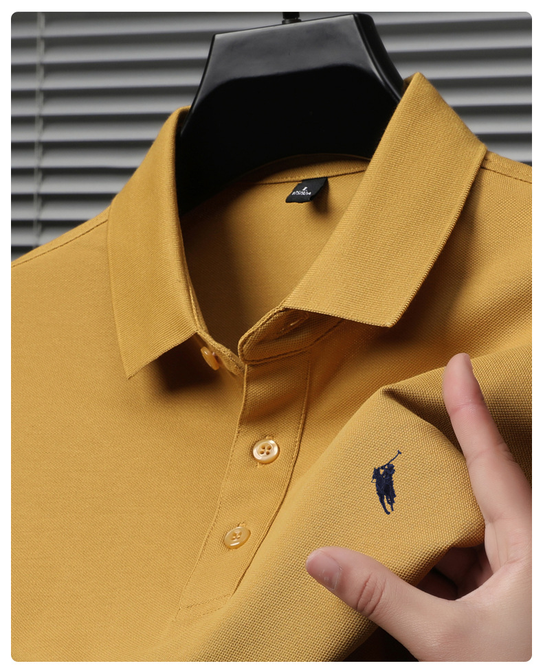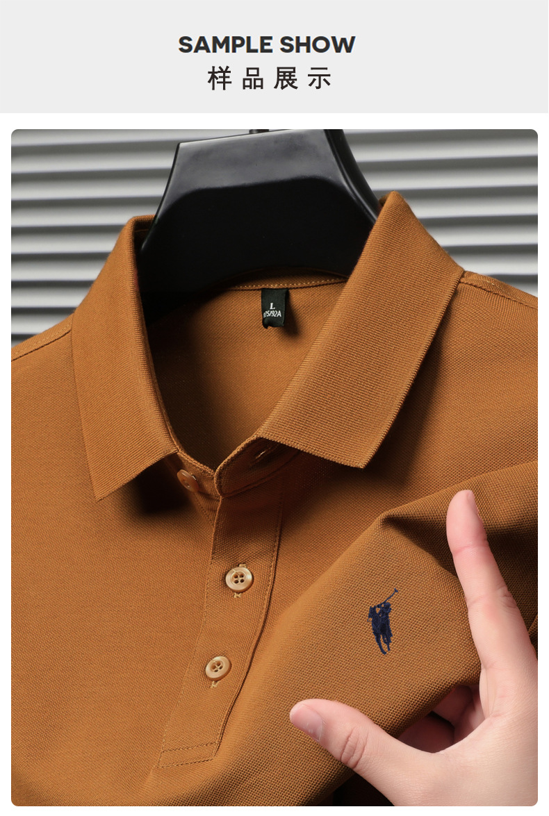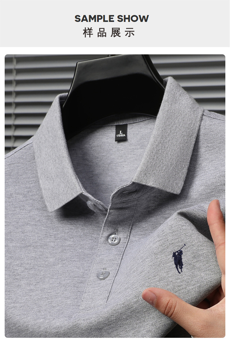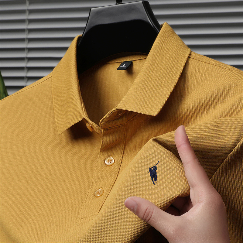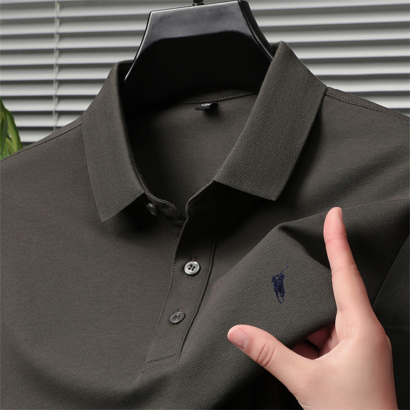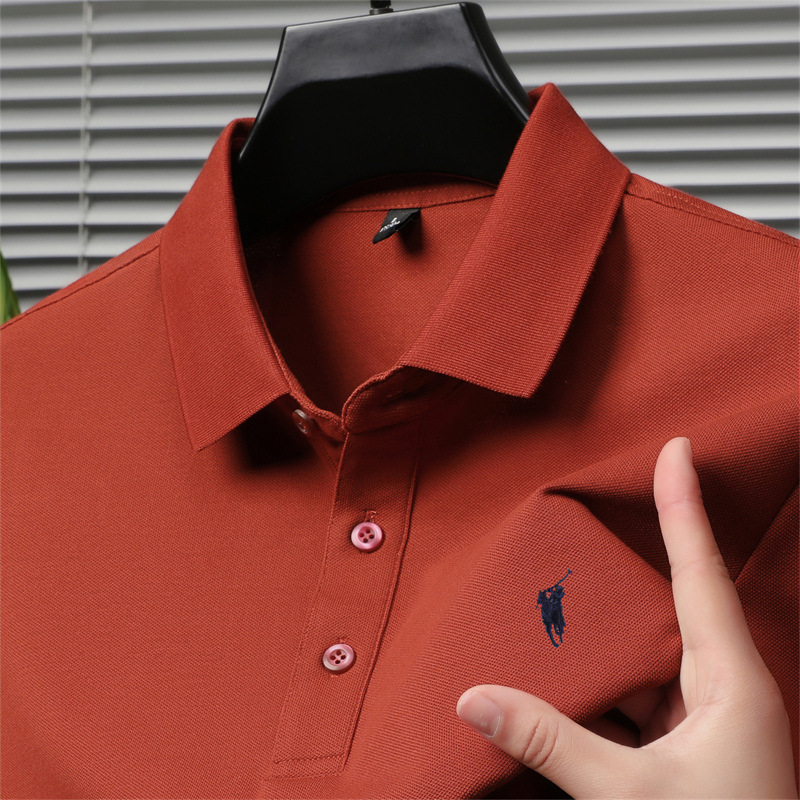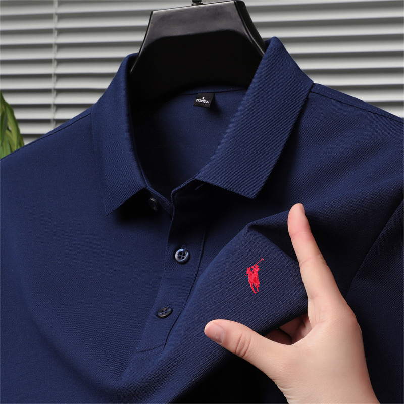 2024 새로운 젊고 중년 반팔 티셔츠 남성용 여름 단색 자수 얇은 트렌디 브랜드 남성용 폴로 셔츠 고급 감각