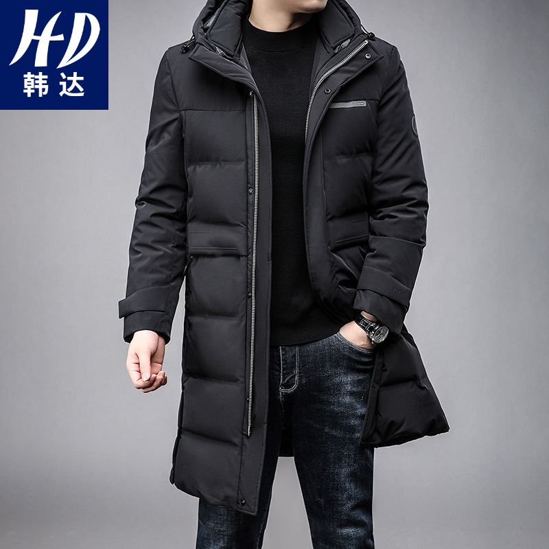 2024 새로운 겨울 젊고 중년 캐주얼 남성 따뜻한 후드 다운 재킷 긴 남성 화이트 오리 다운 코트스토어 가기