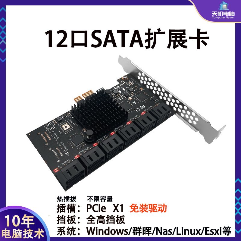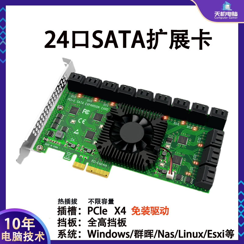无需安装驱动,即插即用,SATA端支持热插拔,独立工作指示灯,PCIE X1插槽全兼容,不限制硬盘容量,所有接口都支持18T硬盘。