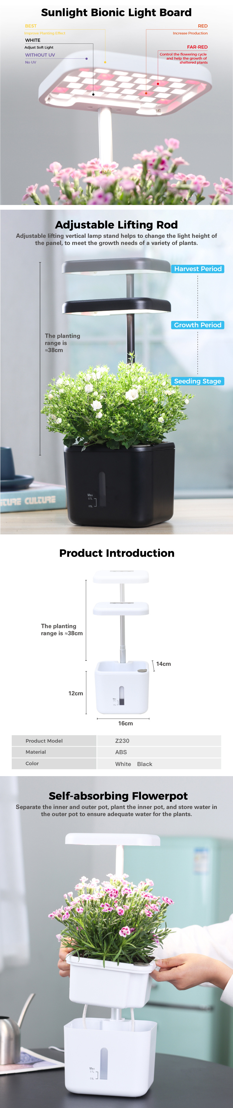 • [미국 버전] 블랙 Z208-17 홀 스마트 화분