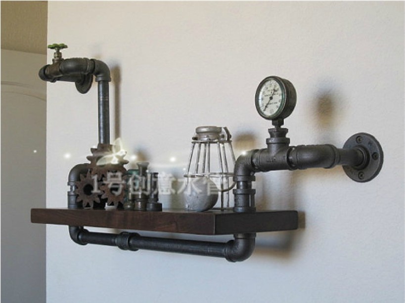 5VLOFT 미국 컨트리 스타일 크리 에이 티브 철 책장 벽걸이 형 선반 수도관 파티션 랙 아트 디스플레이 랙스토어 가기
