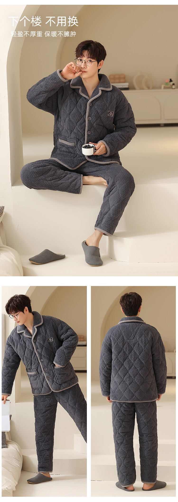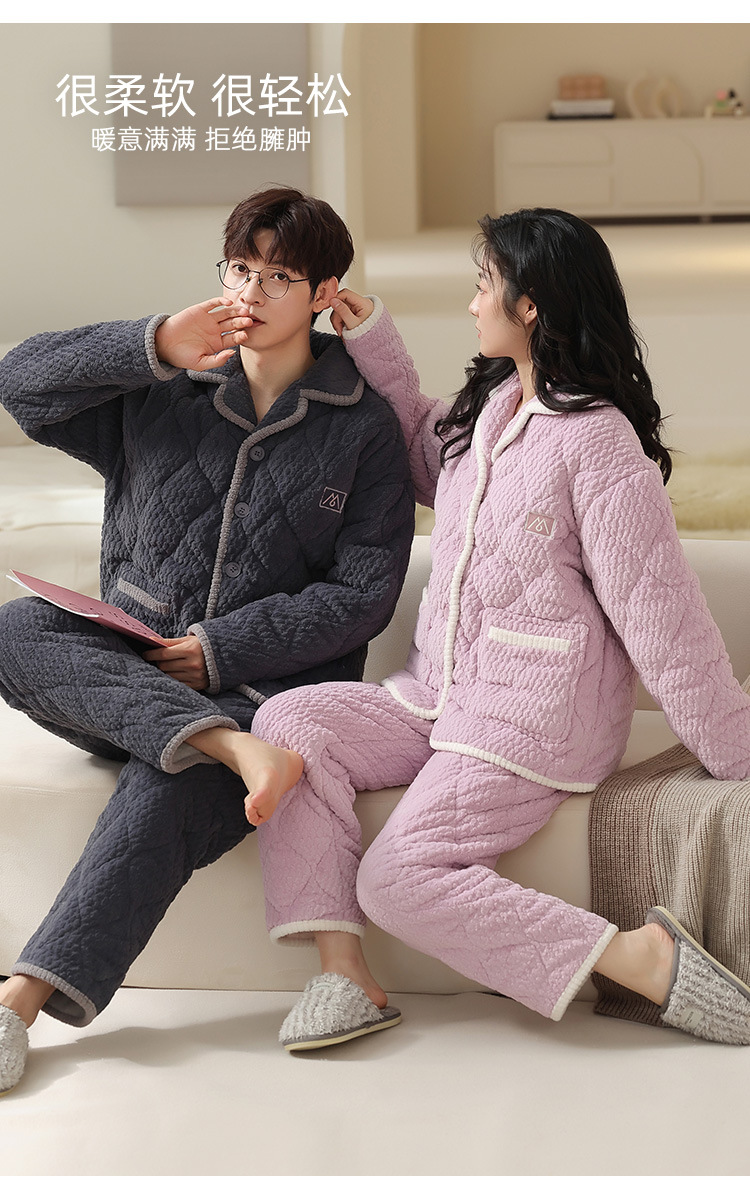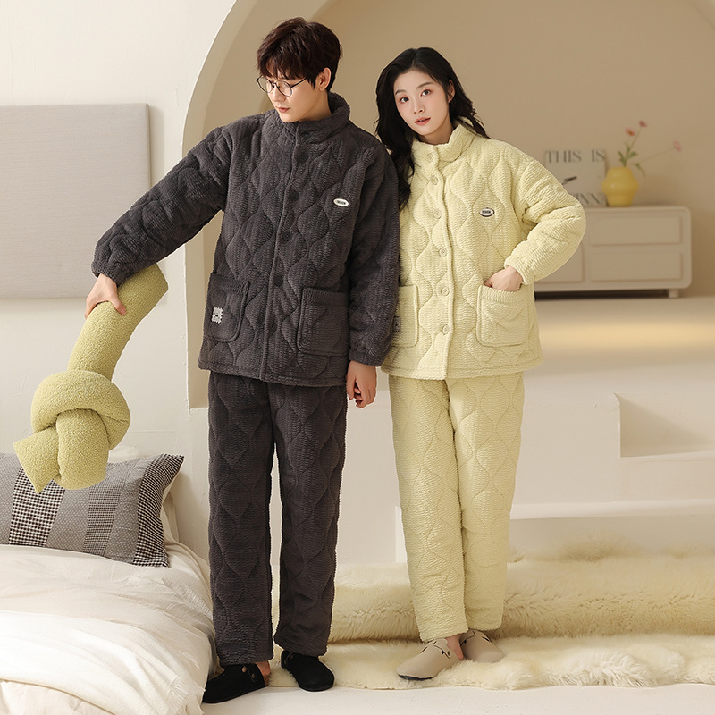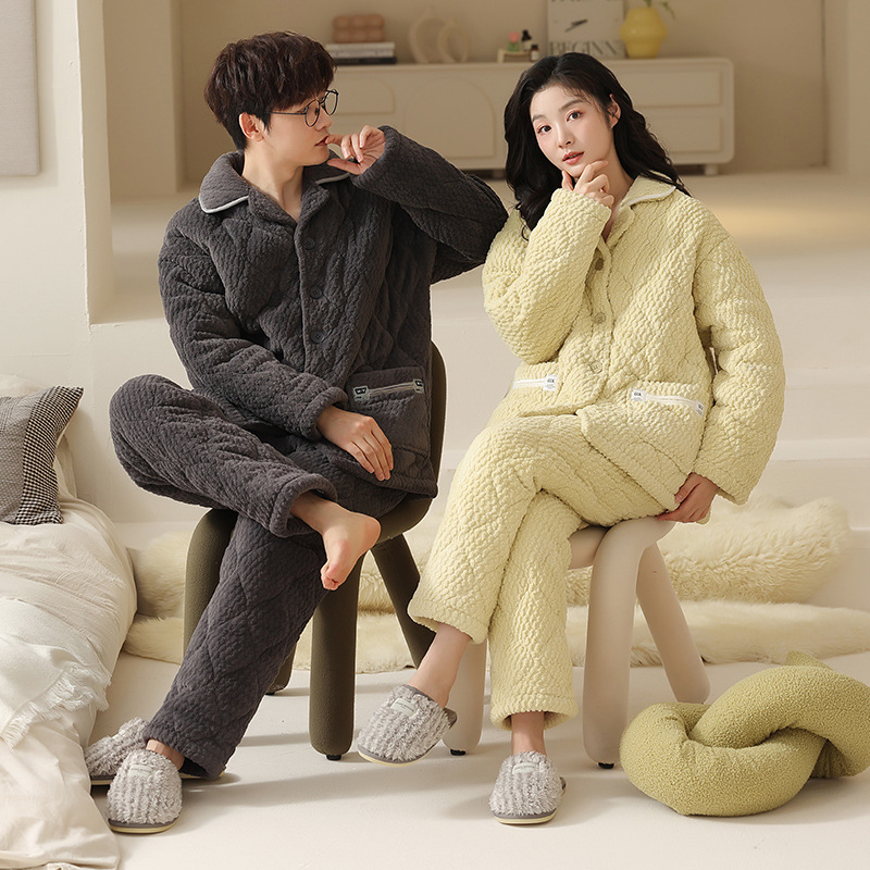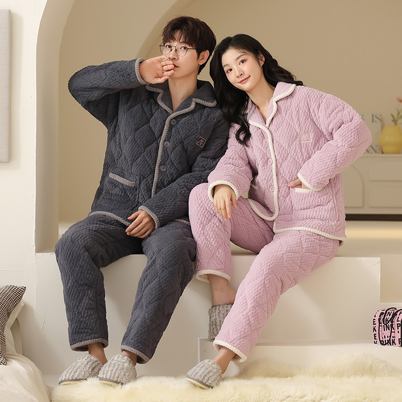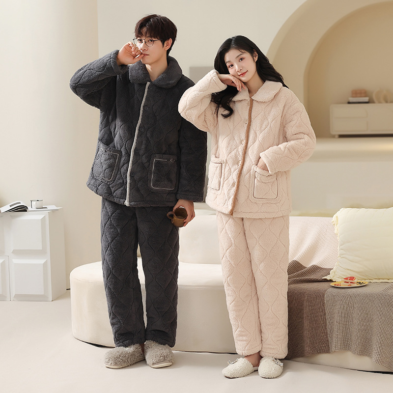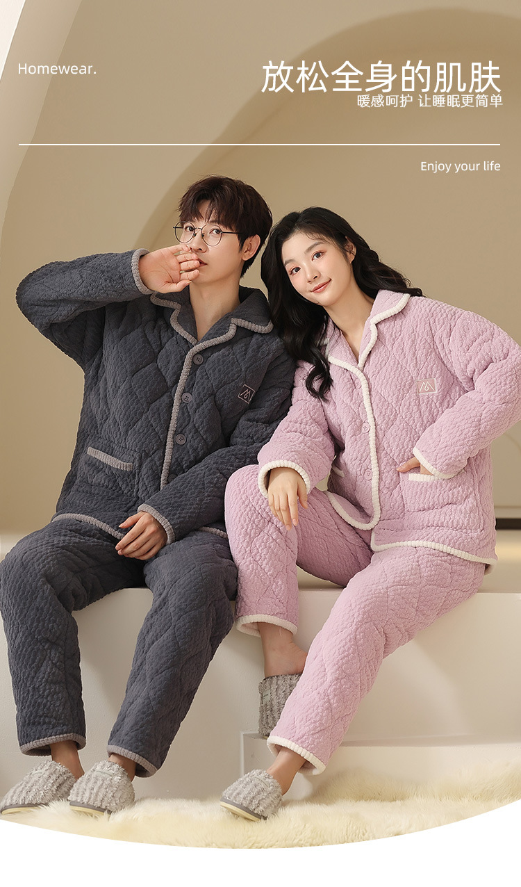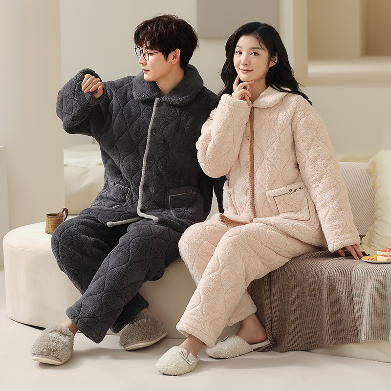 2025 새로운 가을과 겨울 커플 잠옷 기모 두꺼운 따뜻한 플란넬 커플 홈 옷 세트