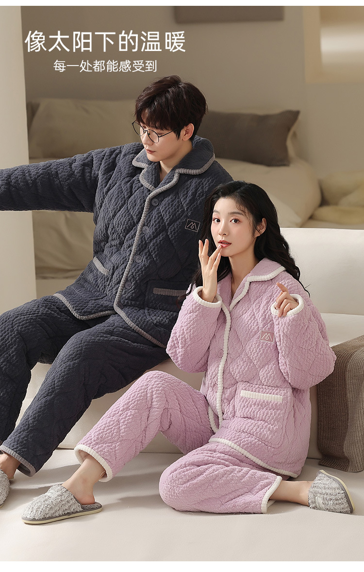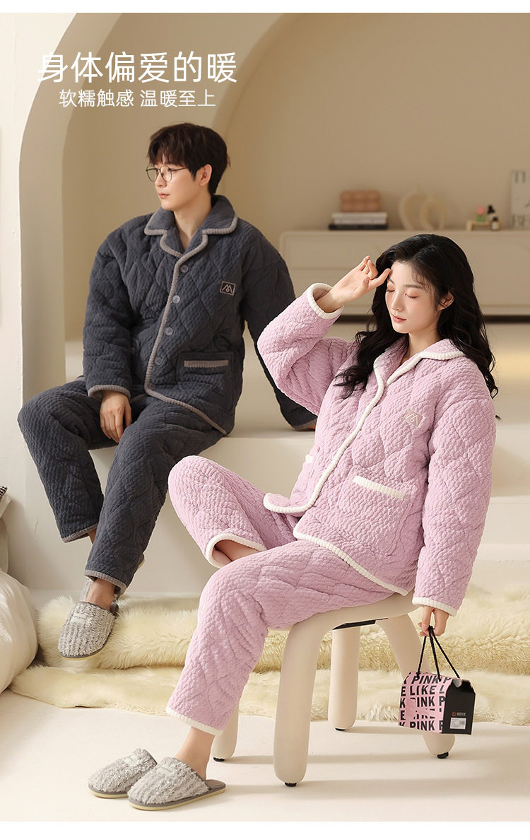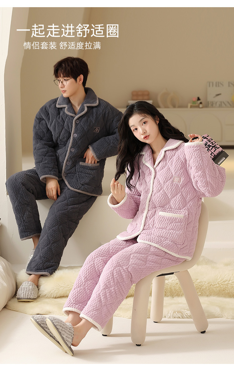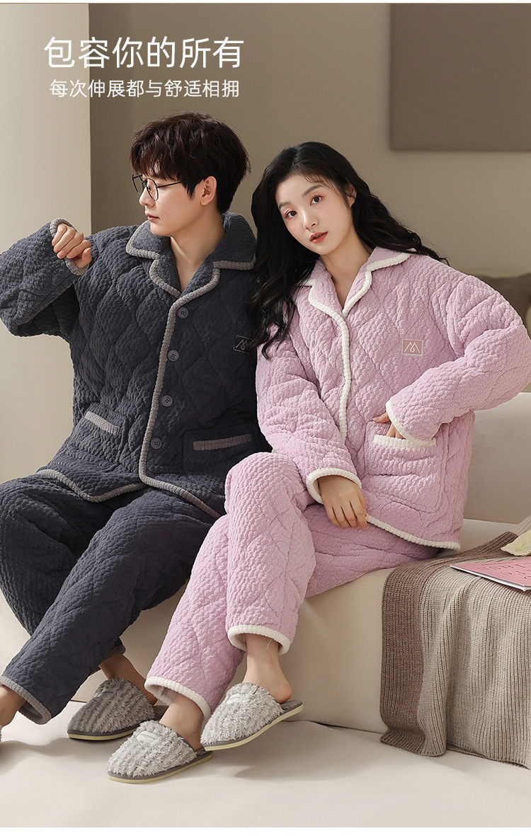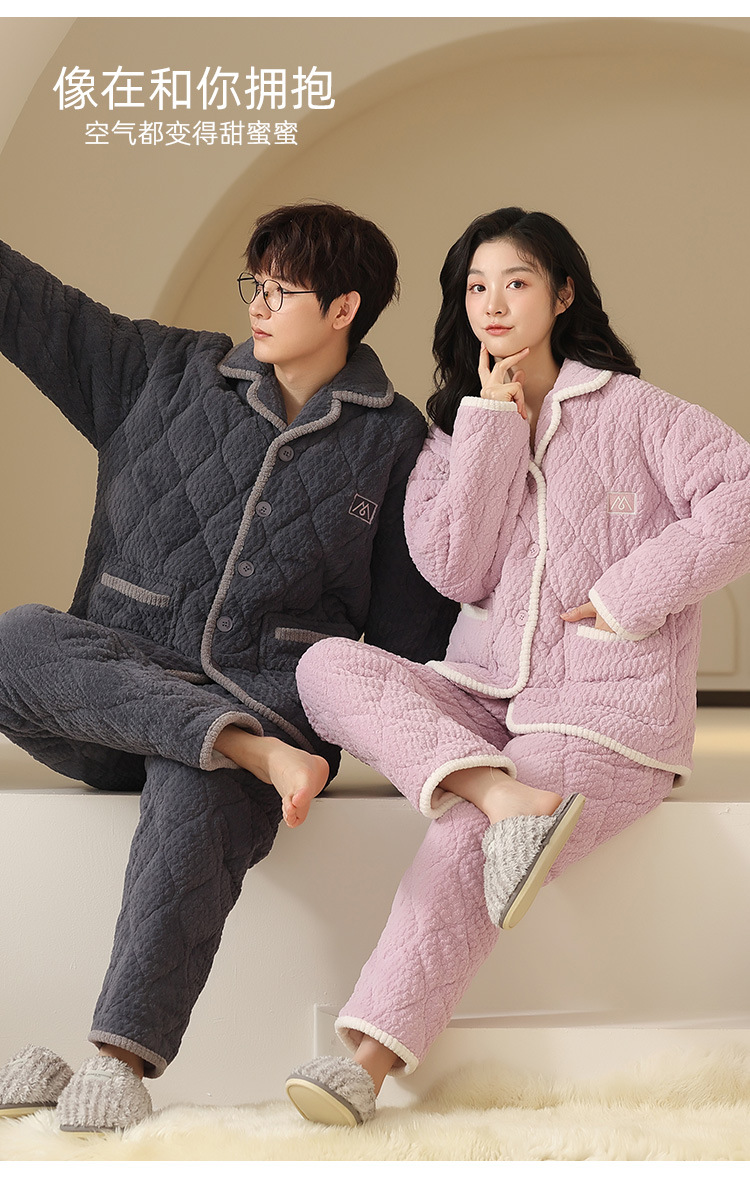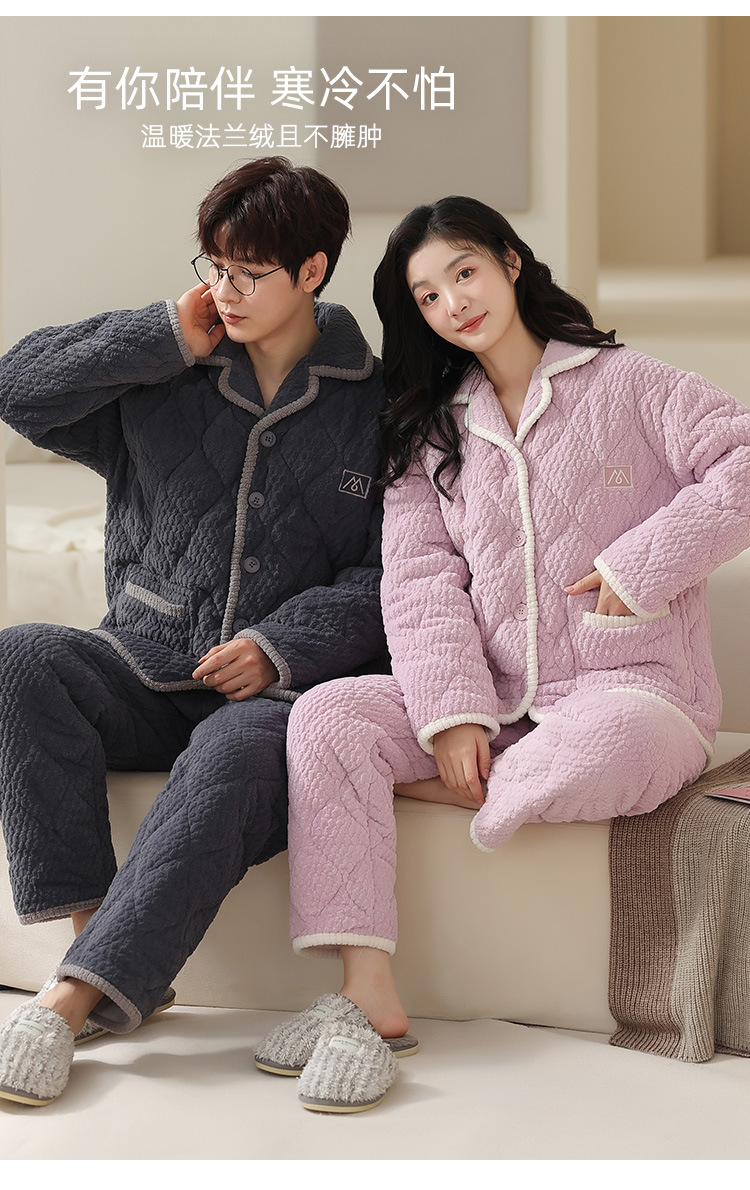 2025 새로운 가을과 겨울 커플 잠옷 기모 두꺼운 따뜻한 플란넬 커플 홈 옷 세트스토어 가기