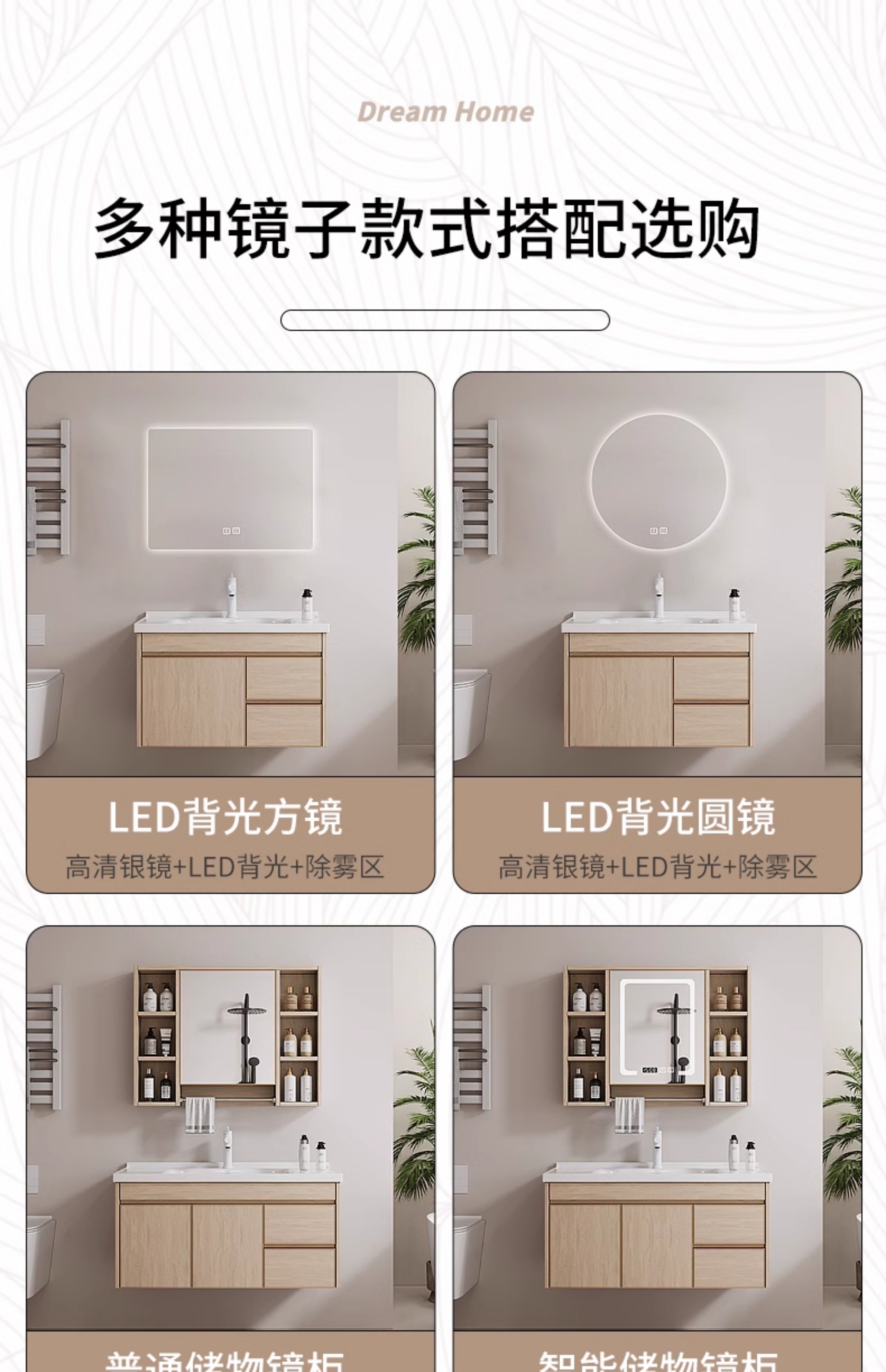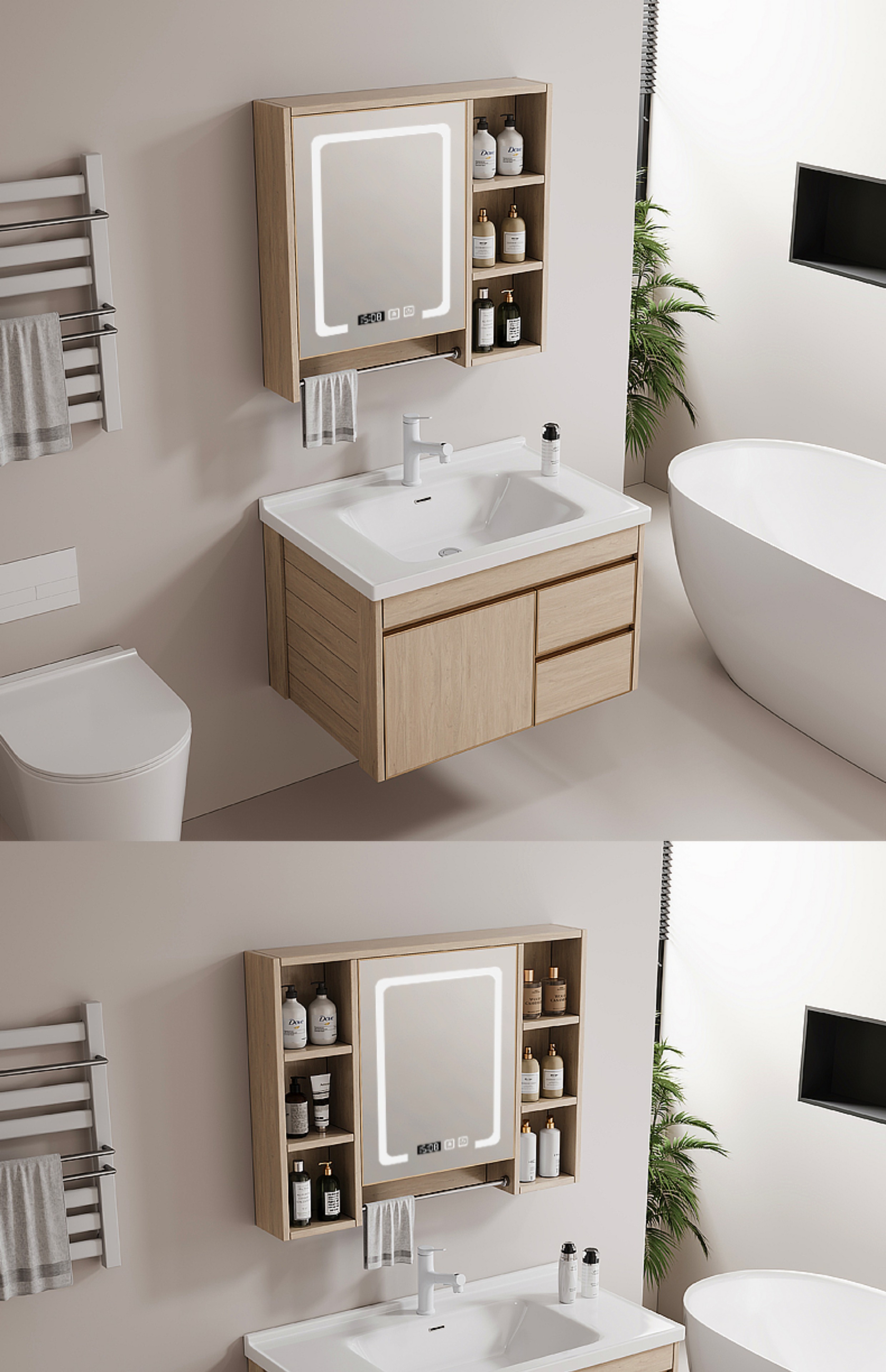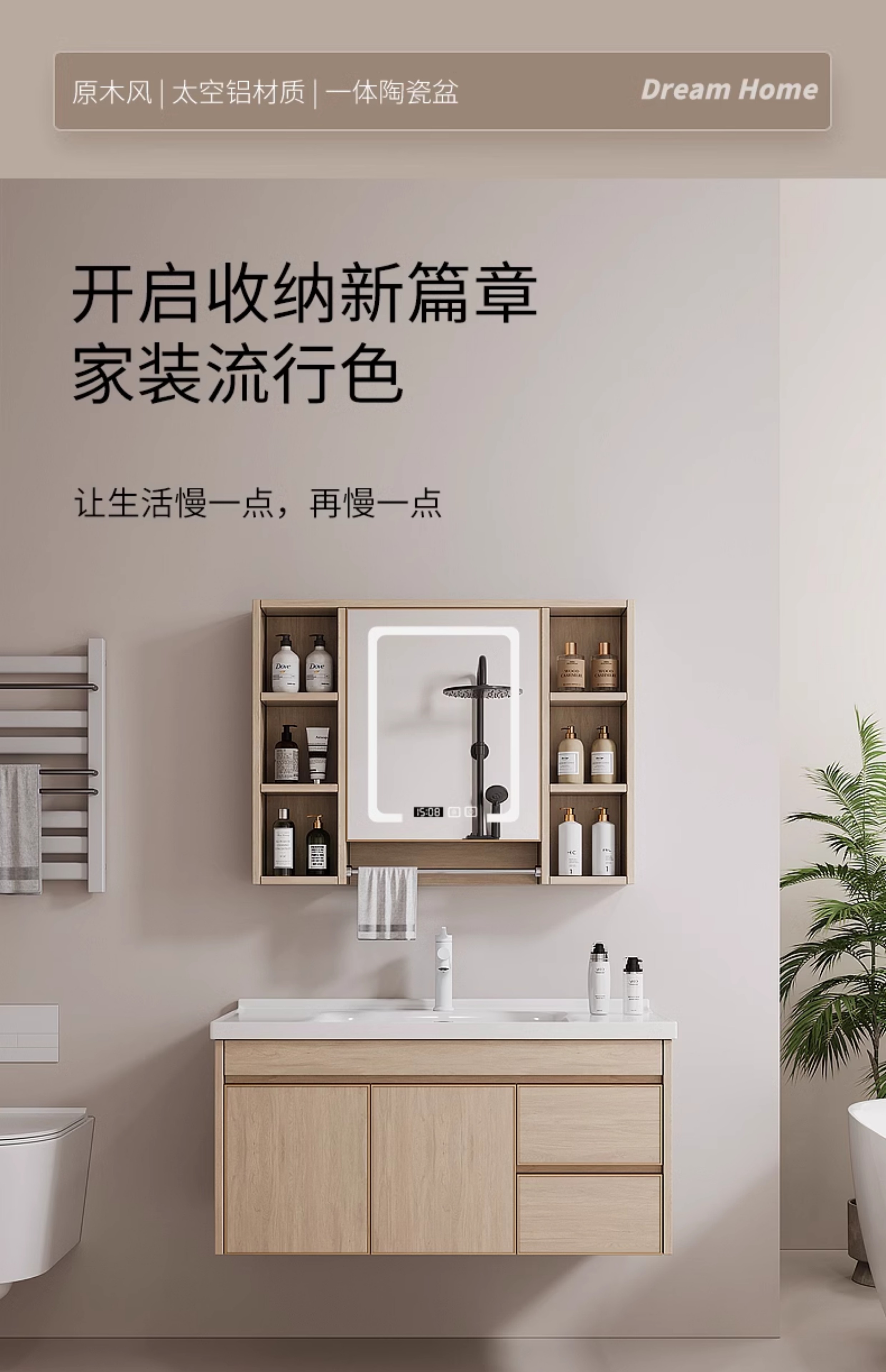 9C 로그 컬러 공간 알루미늄 지능형 욕실 캐비닛 조합 벽 매달린 벌집 알루미늄 합금 세면기 캐비닛 세라믹 통합스토어 가기
