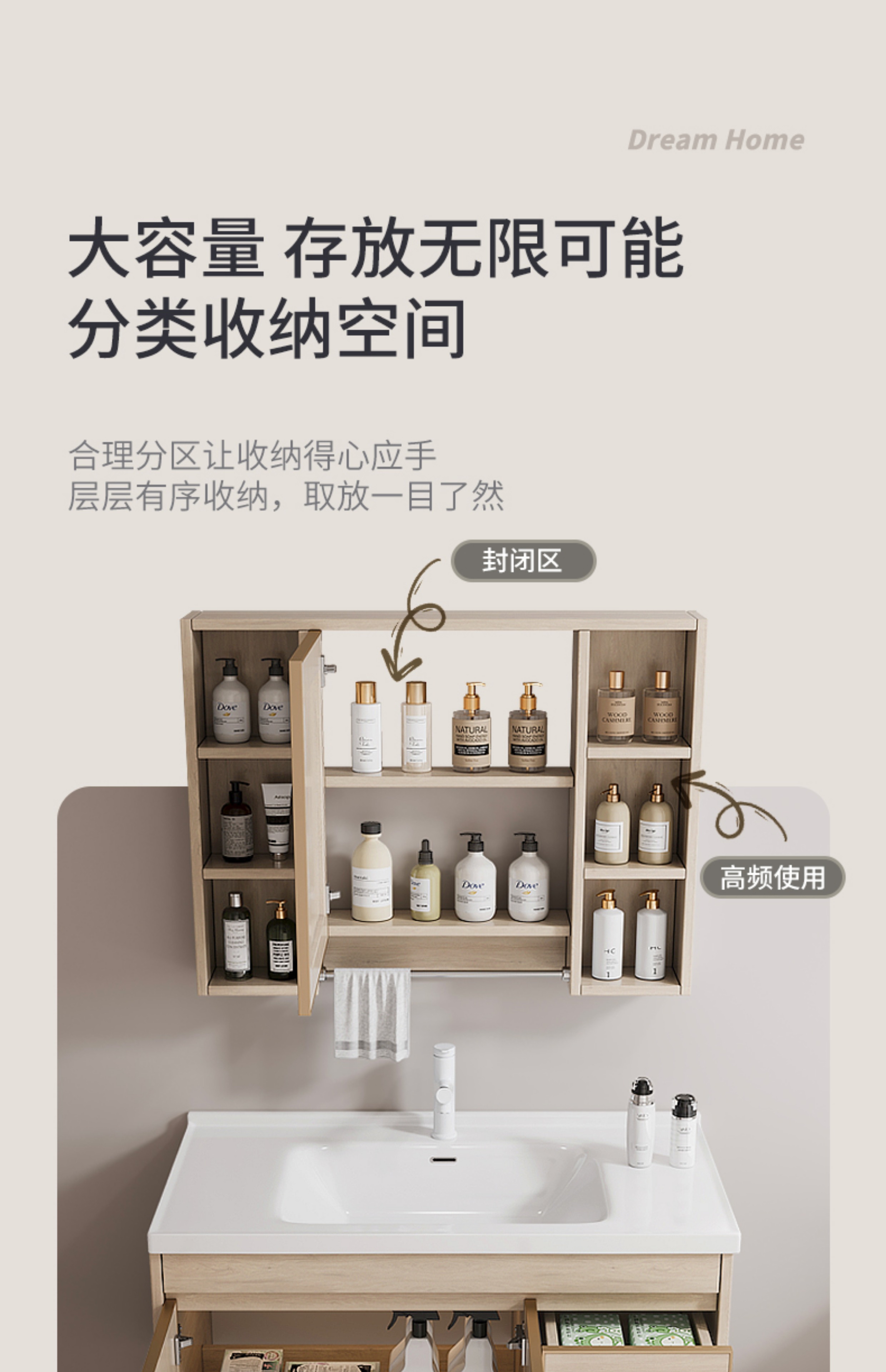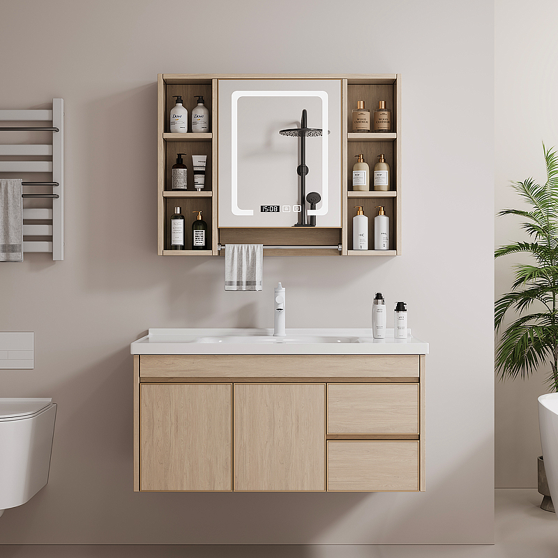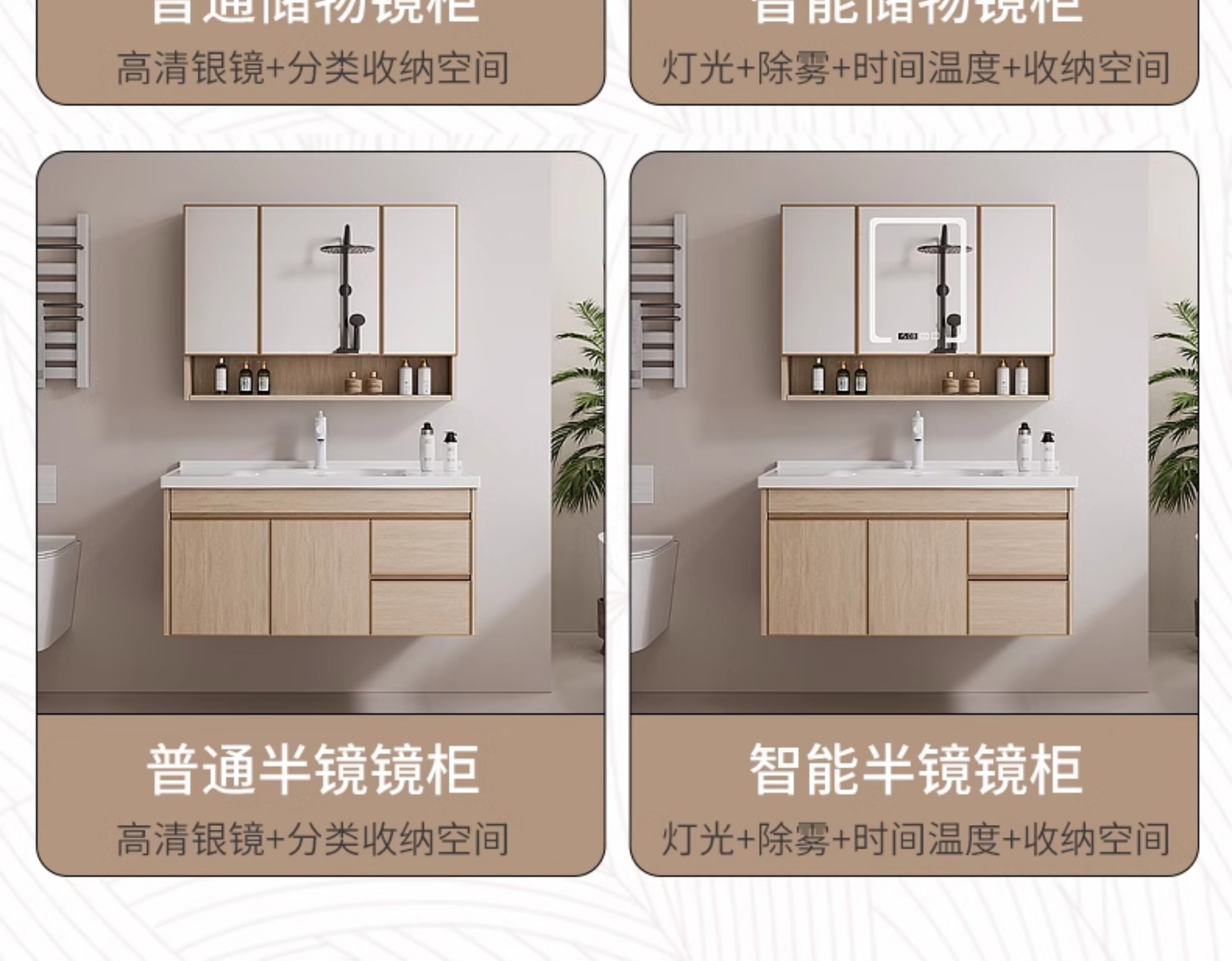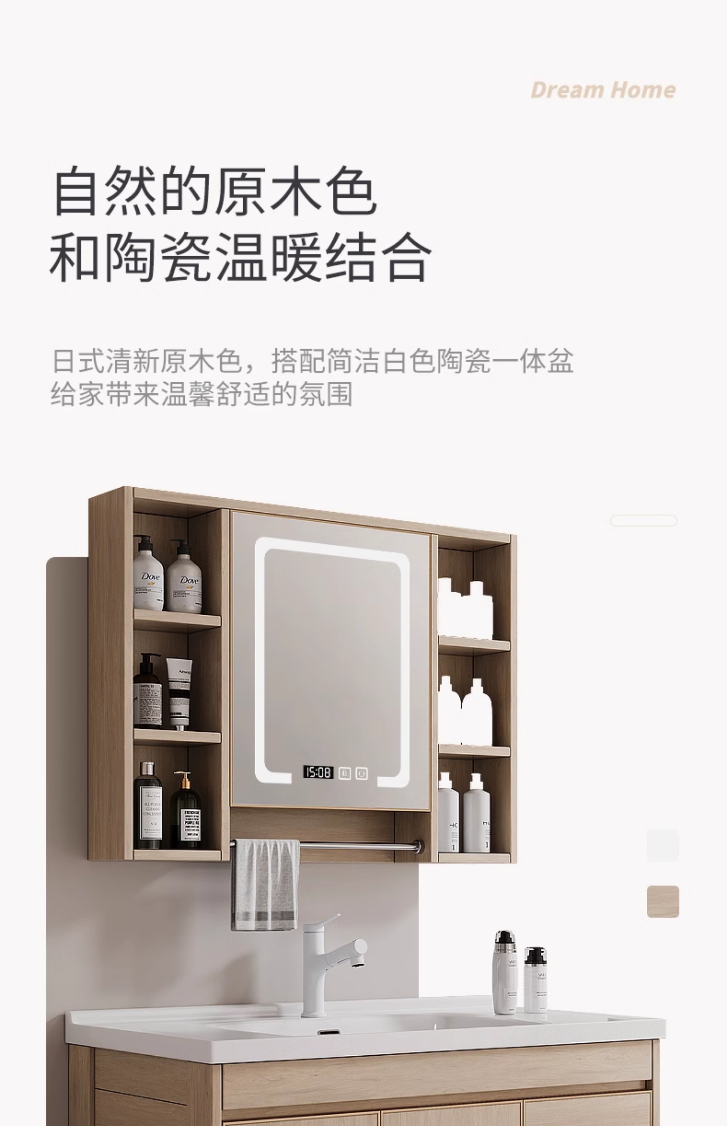 9C 로그 컬러 공간 알루미늄 지능형 욕실 캐비닛 조합 벽 매달린 벌집 알루미늄 합금 세면기 캐비닛 세라믹 통합스토어 가기