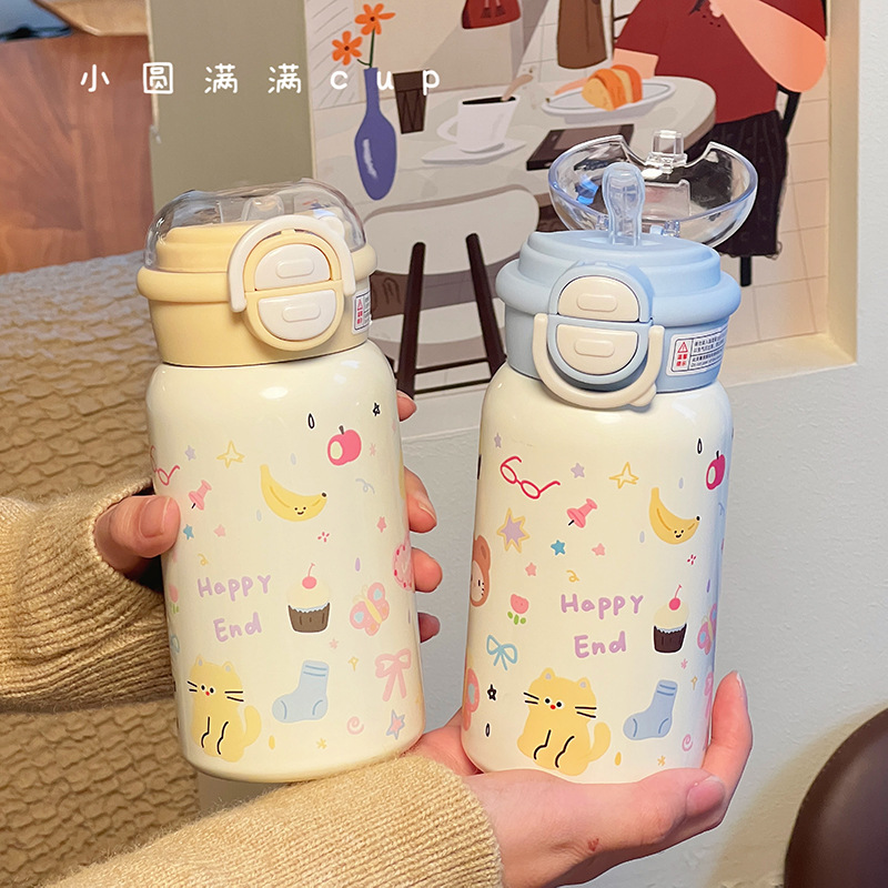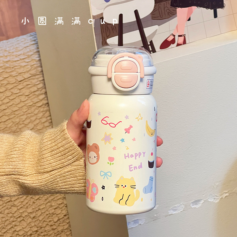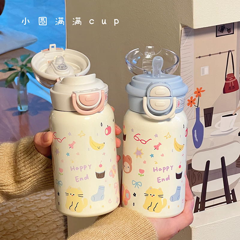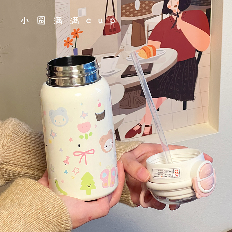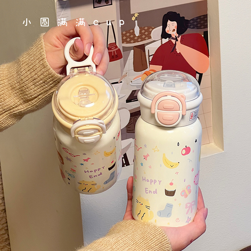 보온병 컵 인 스타일 새로운 소녀 높은 가치 밀짚 316 스테인레스 스틸 대용량 휴대용 핸드 레일 학생 워터 컵스토어 가기