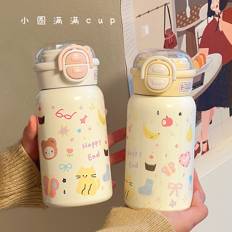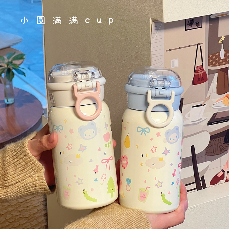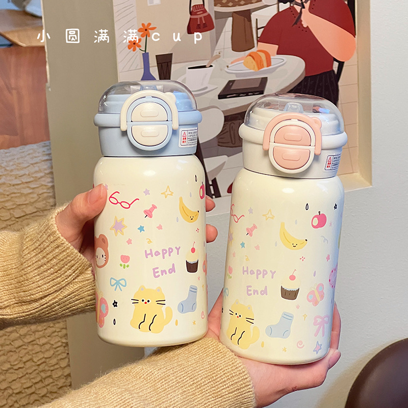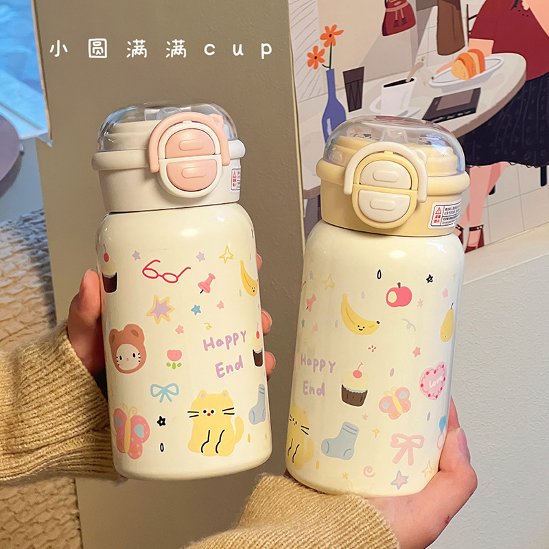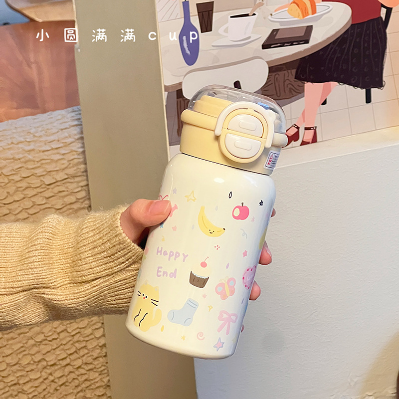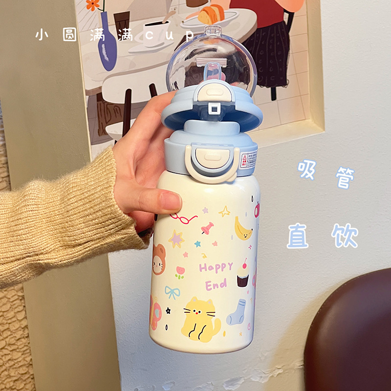보온병 컵 인 스타일 새로운 소녀 높은 가치 밀짚 316 스테인레스 스틸 대용량 휴대용 핸드 레일 학생 워터 컵스토어 가기