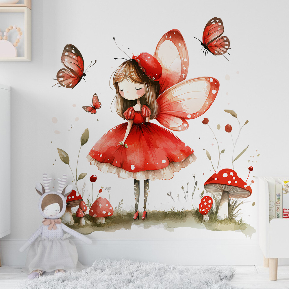 Yiyao DD3359 창조적 인 붉은 버섯 꽃 마법사 인쇄 벽지 방 벽 배경 장식 자기 접착 스티커