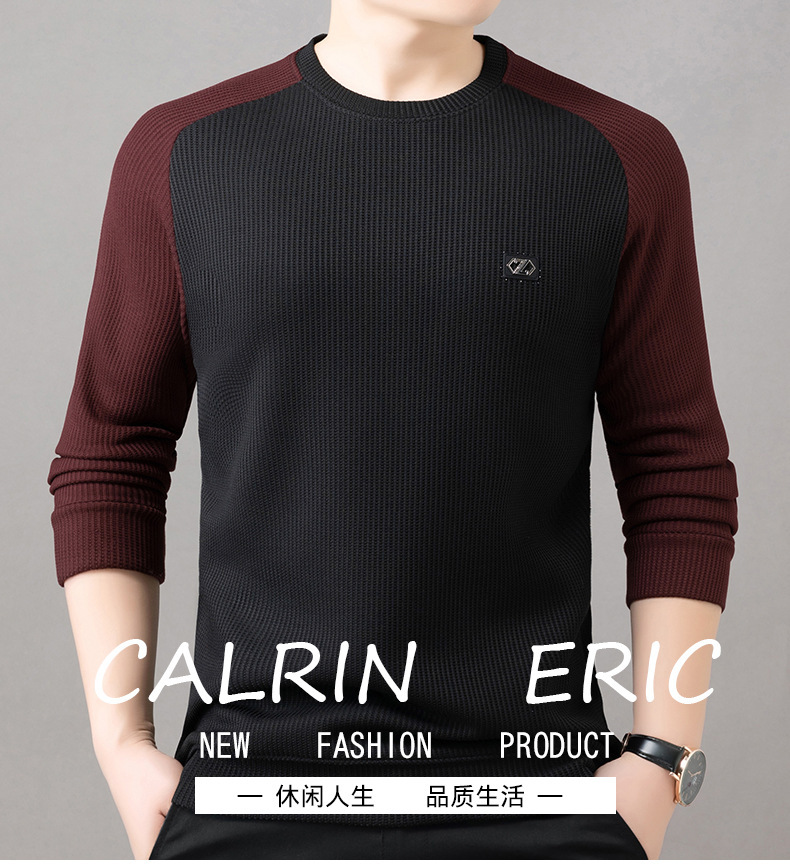 남자 기모 티셔츠 가을과 겨울 새로운 젊고 중년 남자의 단순한 느슨한 둥근 목 두꺼운 컬러 매칭 티셔츠스토어 가기
