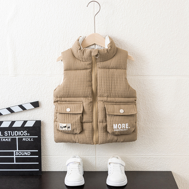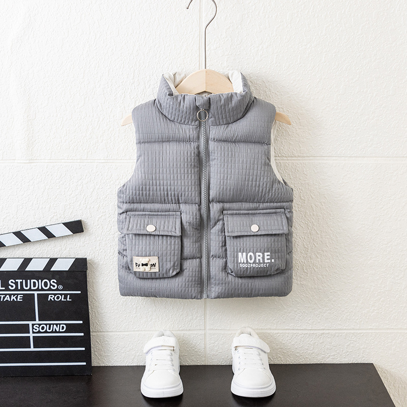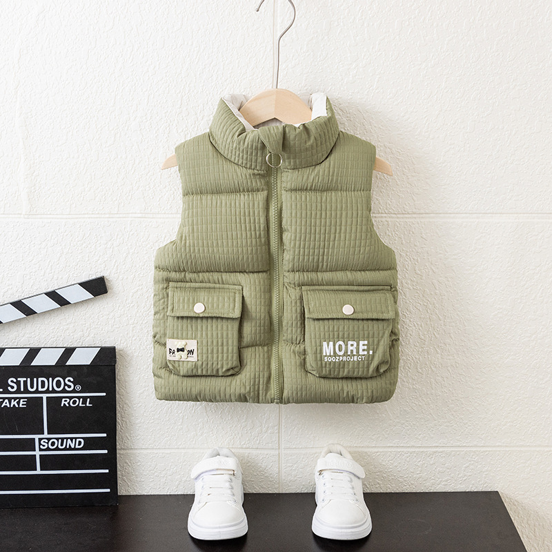 어린이 조끼 외부 착용 기모 두꺼운 2024 새로운 스타일 허리 코트 소년의 따뜻한 캐주얼 느슨한 아기 조끼 가을과 겨울스토어 가기