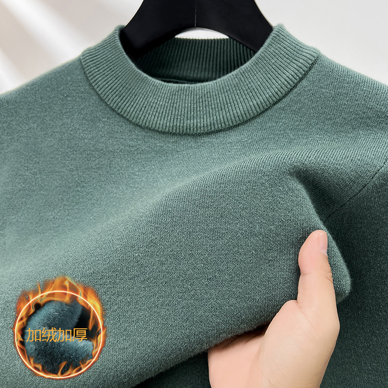하이 퀄리티 원피스 벨벳 기모 스웨터 남자 두꺼운 반 높이 목 따뜻한 새 니트 베이스 셔츠 솔리드 컬러 탑스토어 가기