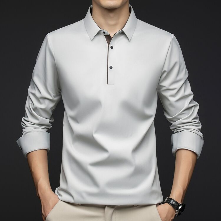 기모 두꺼운 원활한 폴로 셔츠 남자의 겨울 새로운 사업 캐주얼 솔리드 컬러 라르 따뜻한 긴 소매베이스 셔츠
