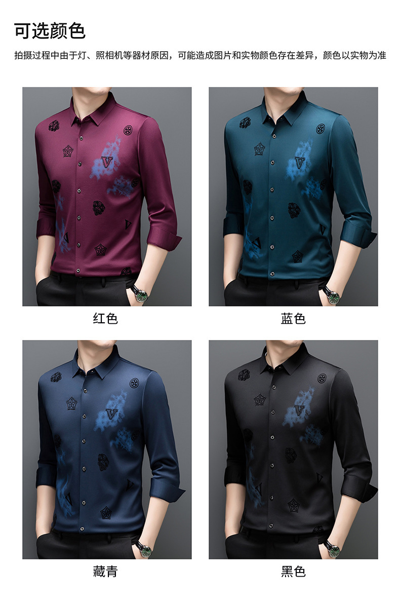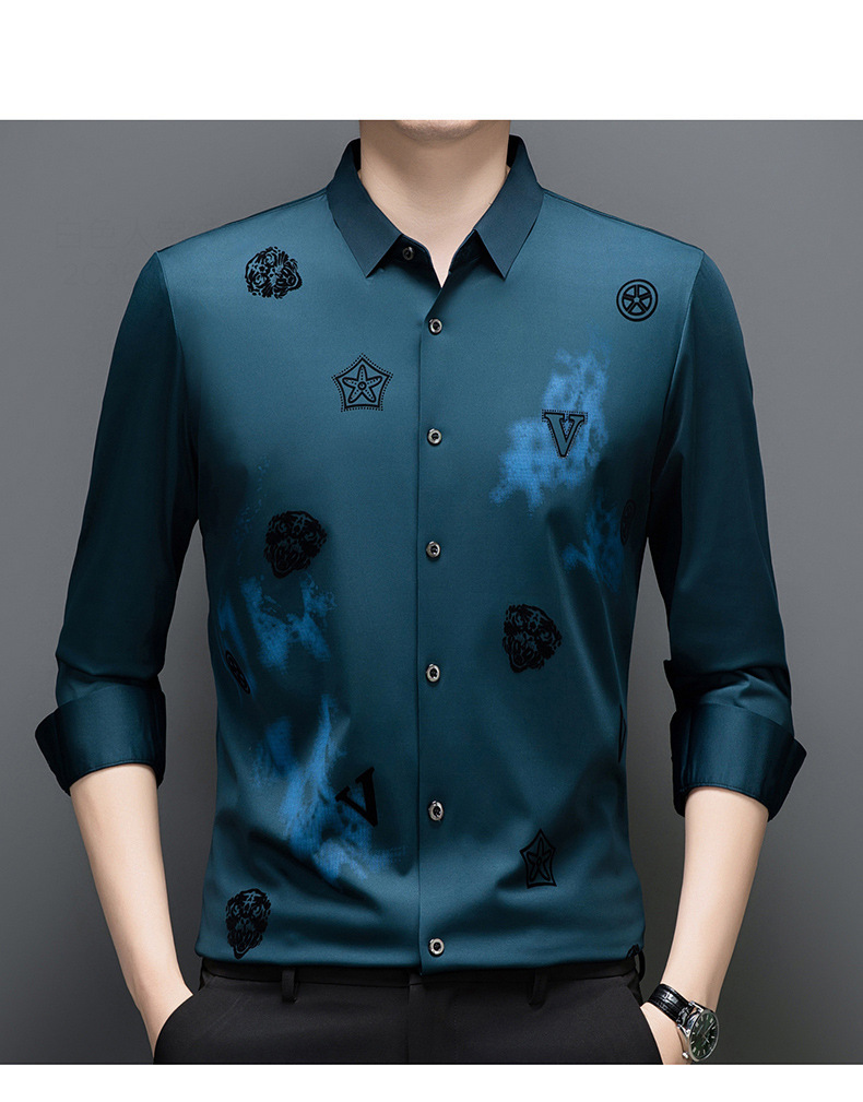 남성용 하이 퀄리티 신설 가을 · 겨울 뜨거운 시추 낙서 꽃 흔적없는 기모 긴팔 셔츠… 중년 비즈니스 우아한 셔츠