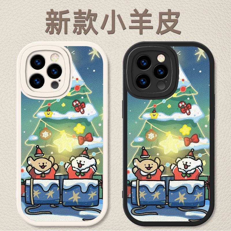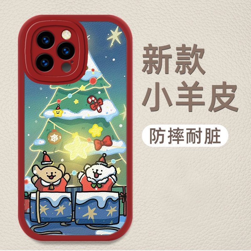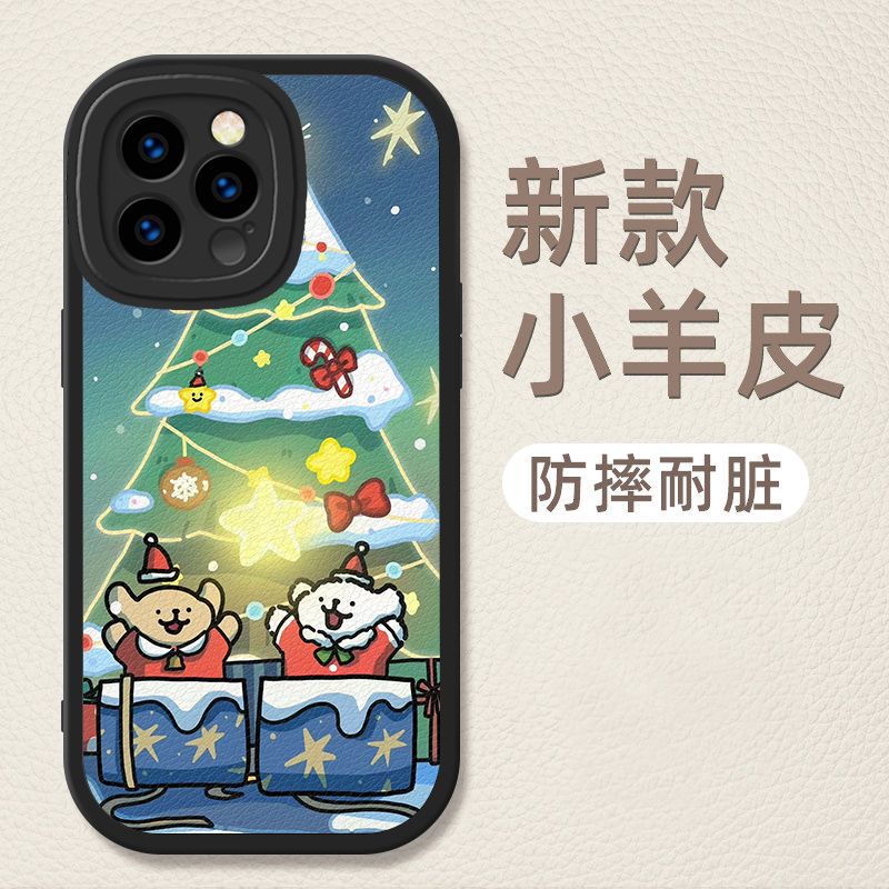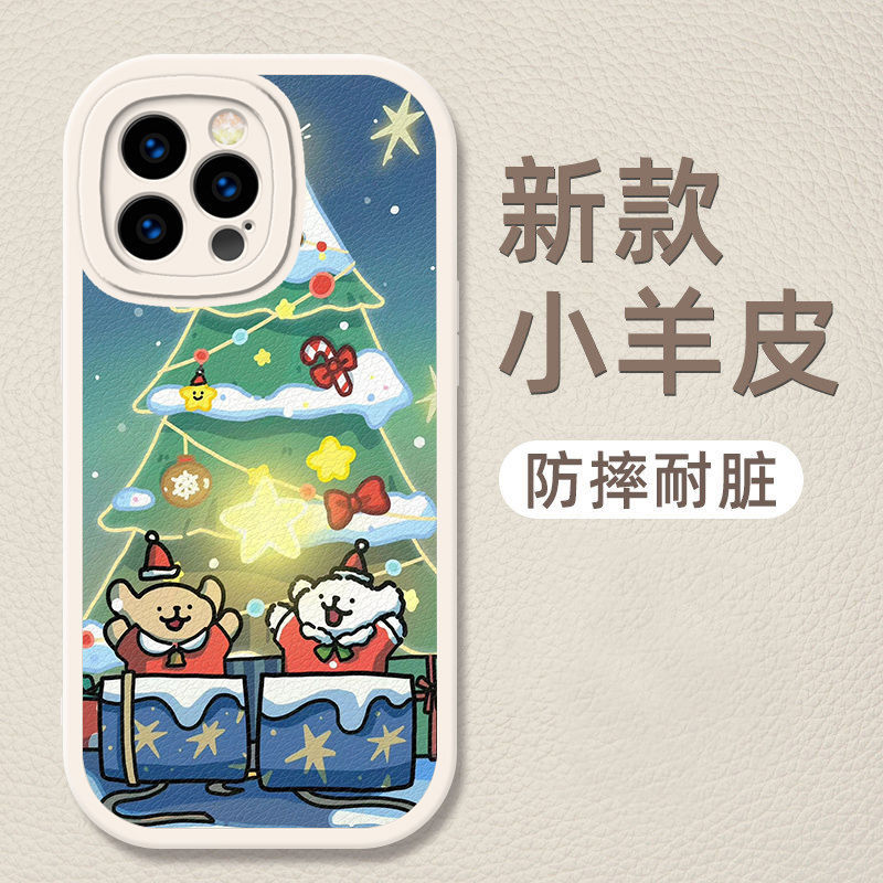 线条狗圣诞树适用于苹果16pro小羊皮15/14plus手机壳13/12/11新款