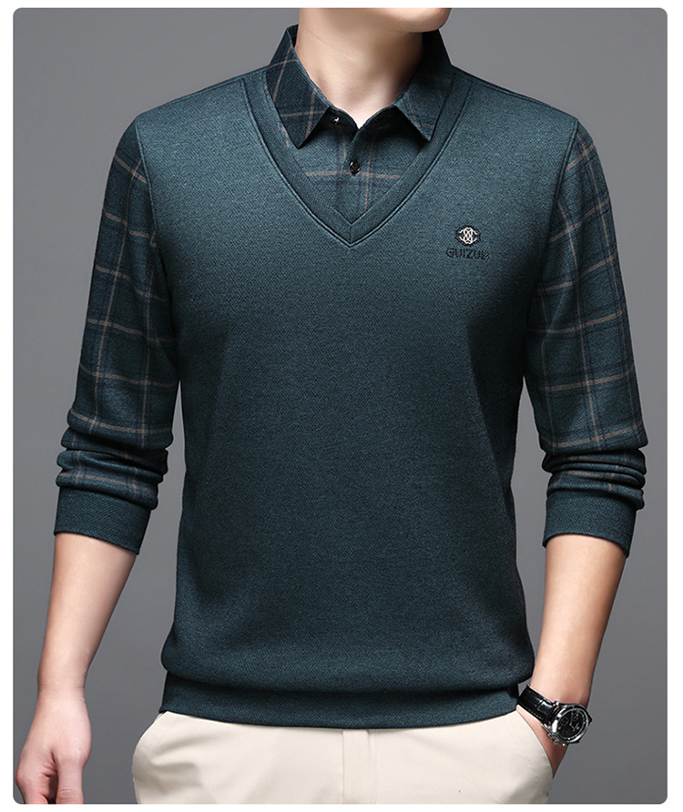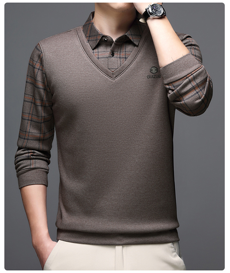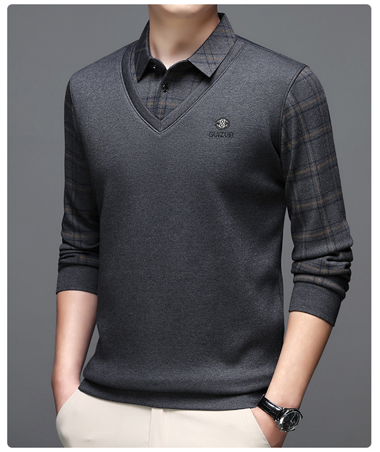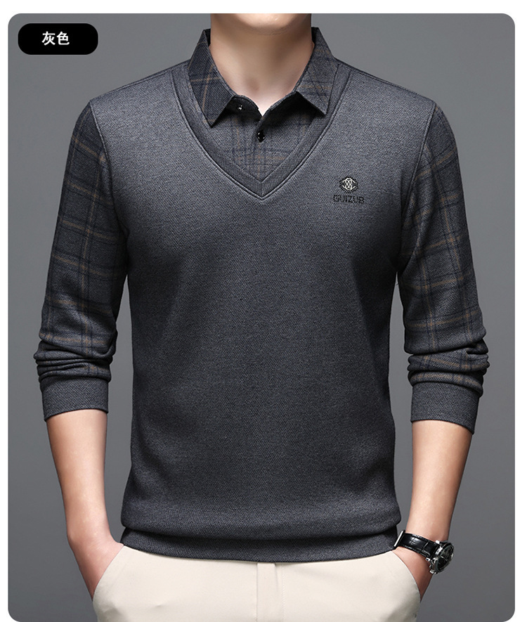 가을과 겨울 뉴 오스트리아 곡물 양털 긴팔 티셔츠 남자 가짜 투피스 베이스 셔츠 기모 두꺼운 폴로 셔츠 남자 탑