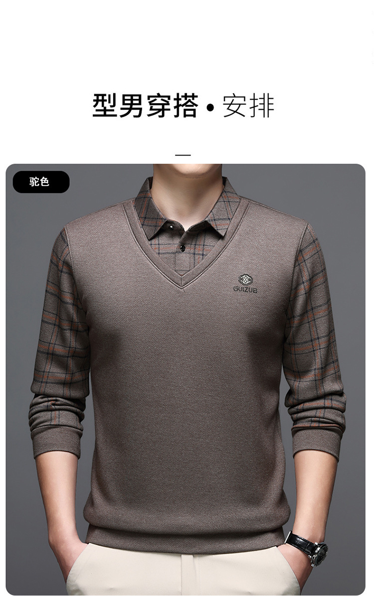 가을과 겨울 뉴 오스트리아 곡물 양털 긴팔 티셔츠 남자 가짜 투피스 베이스 셔츠 기모 두꺼운 폴로 셔츠 남자 탑스토어 가기