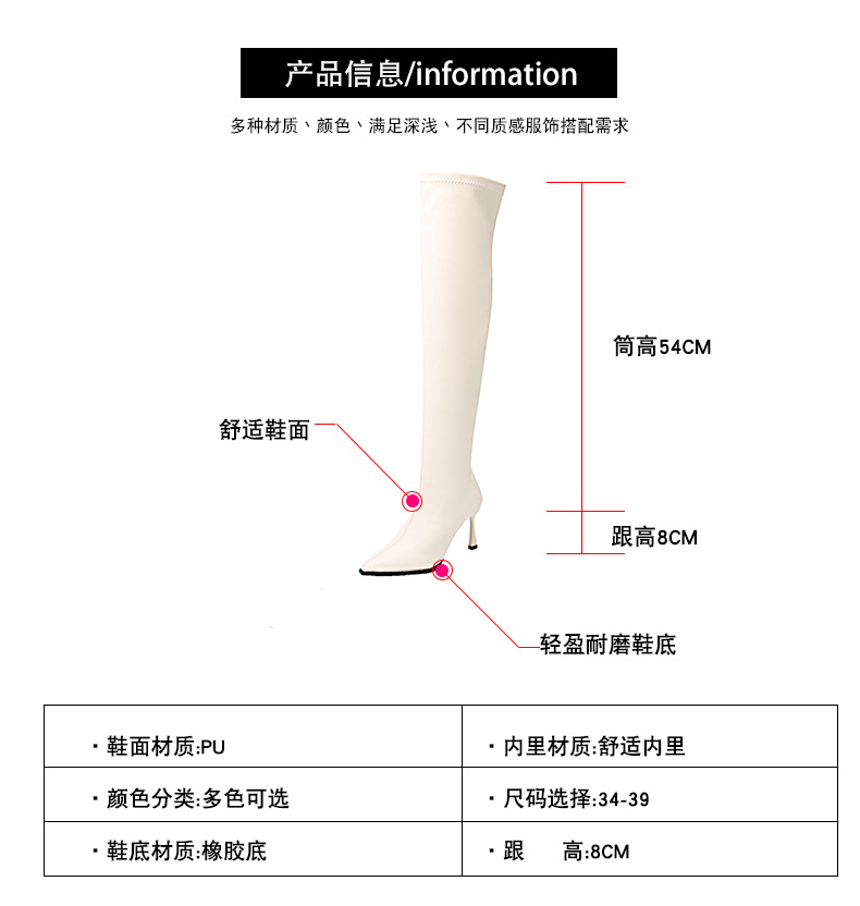 35-44 플러스 사이즈 여성 신발 41 새로운 슬리밍 무릎 부츠 여성 42 뾰족한 부츠 여성의 얇은 힐 긴 튜브 탄성 부츠 41스토어 가기