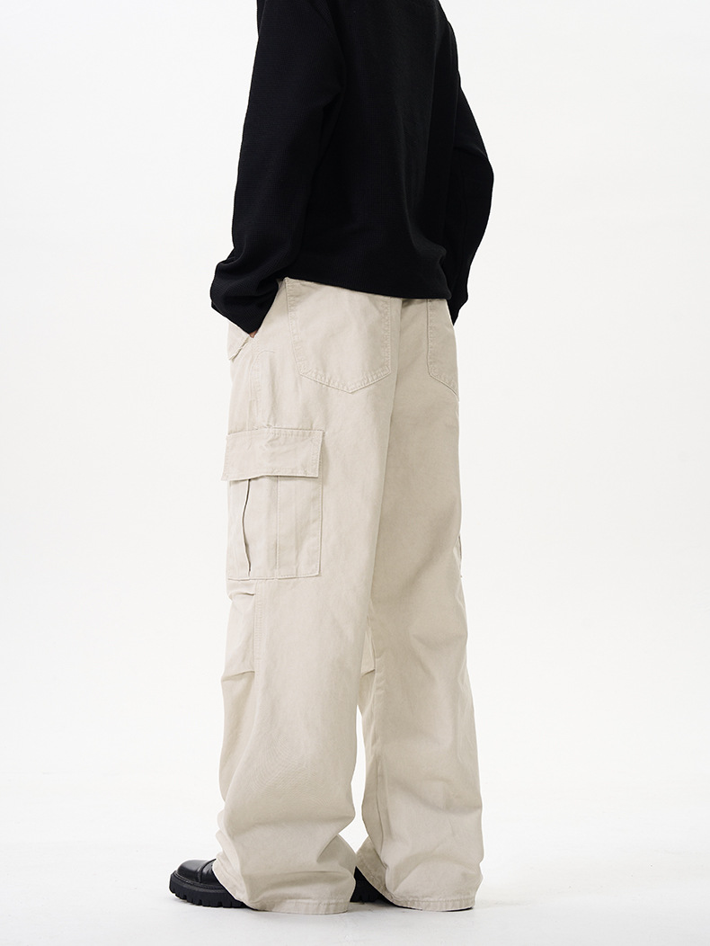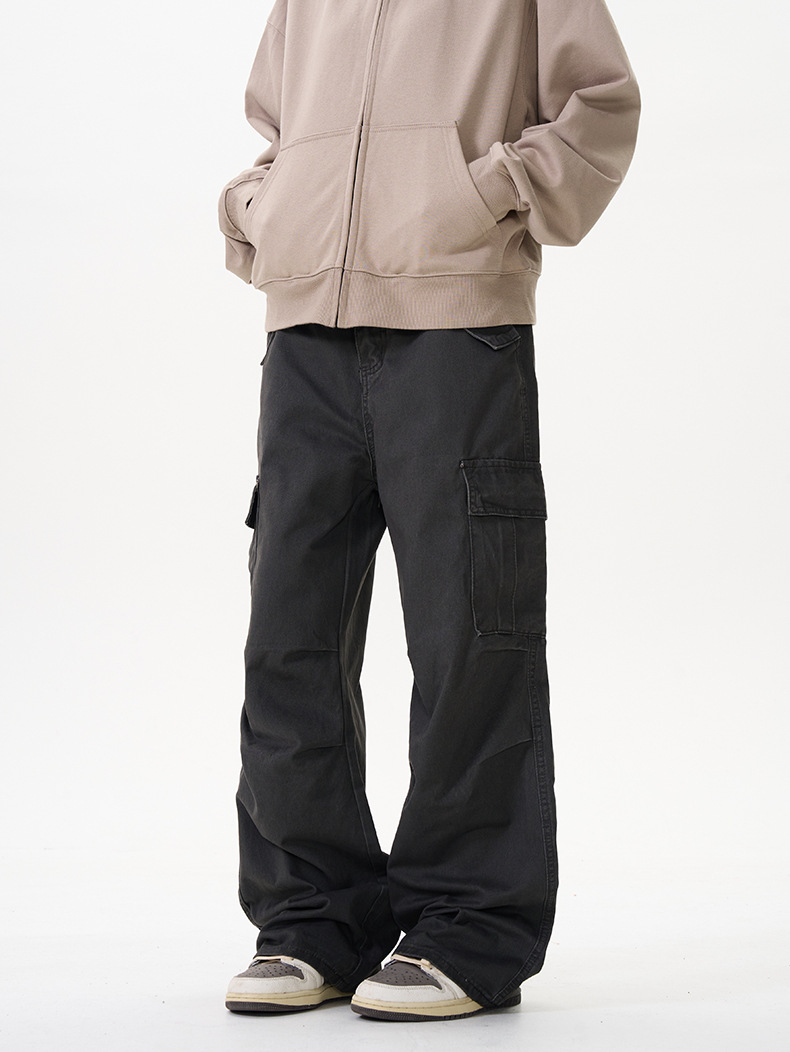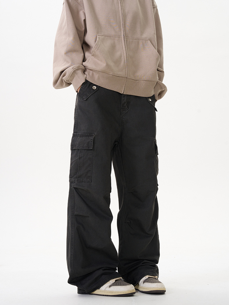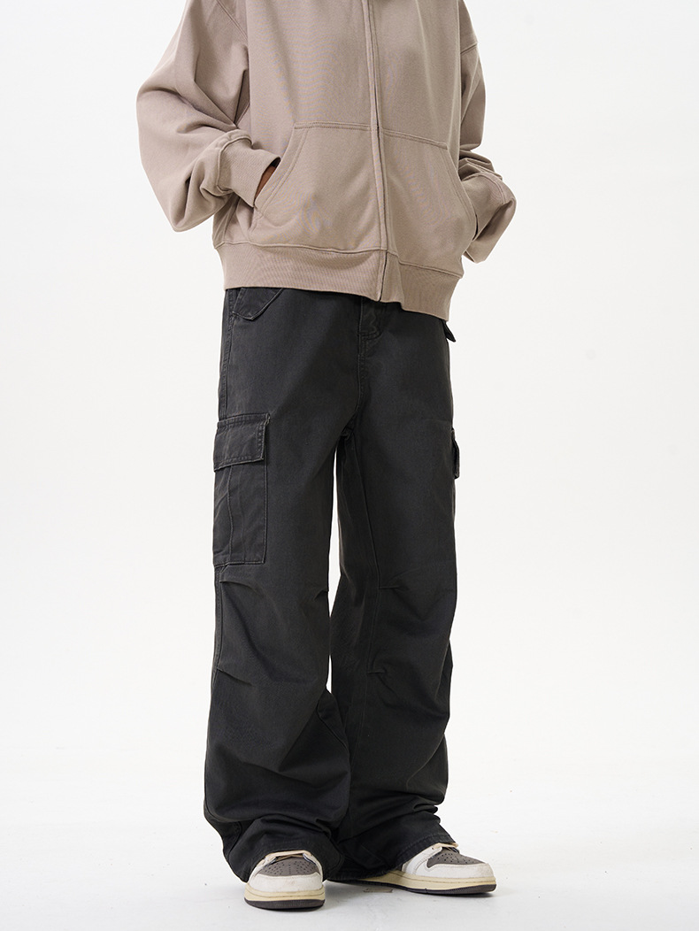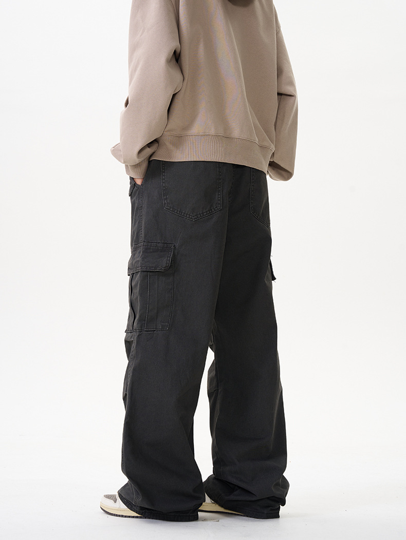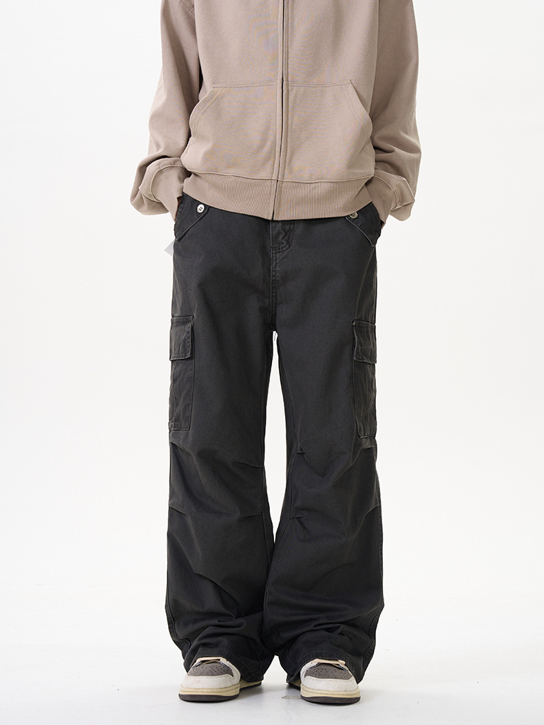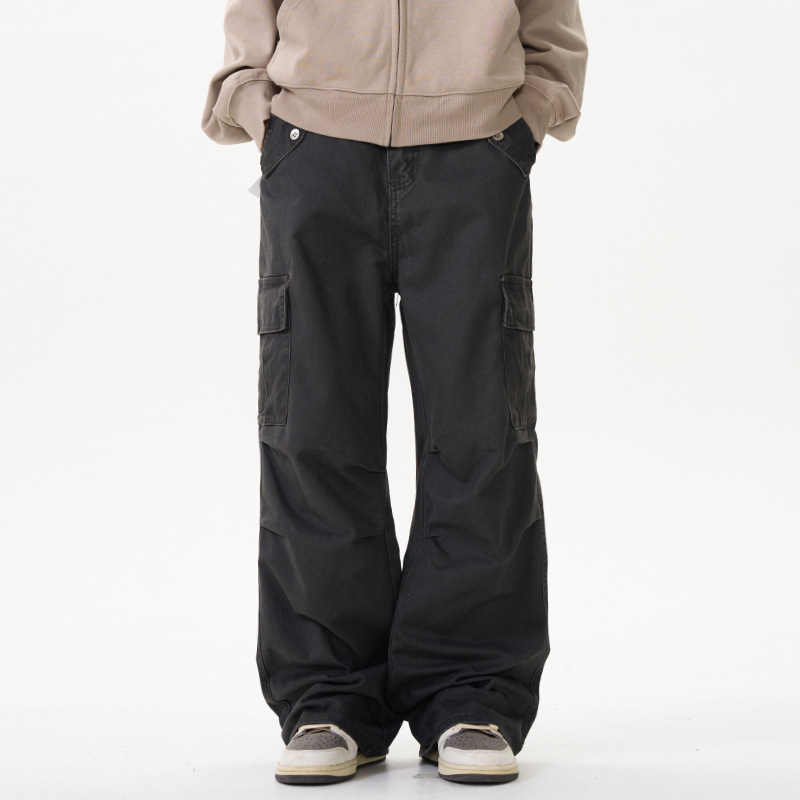 Muqiu Men's Clothing | Maillard 레트로 워싱 디스트레스드 캐주얼 바지 남성용 멀티 포켓 루즈 스트레이트 파라트리퍼 작업복스토어 가기