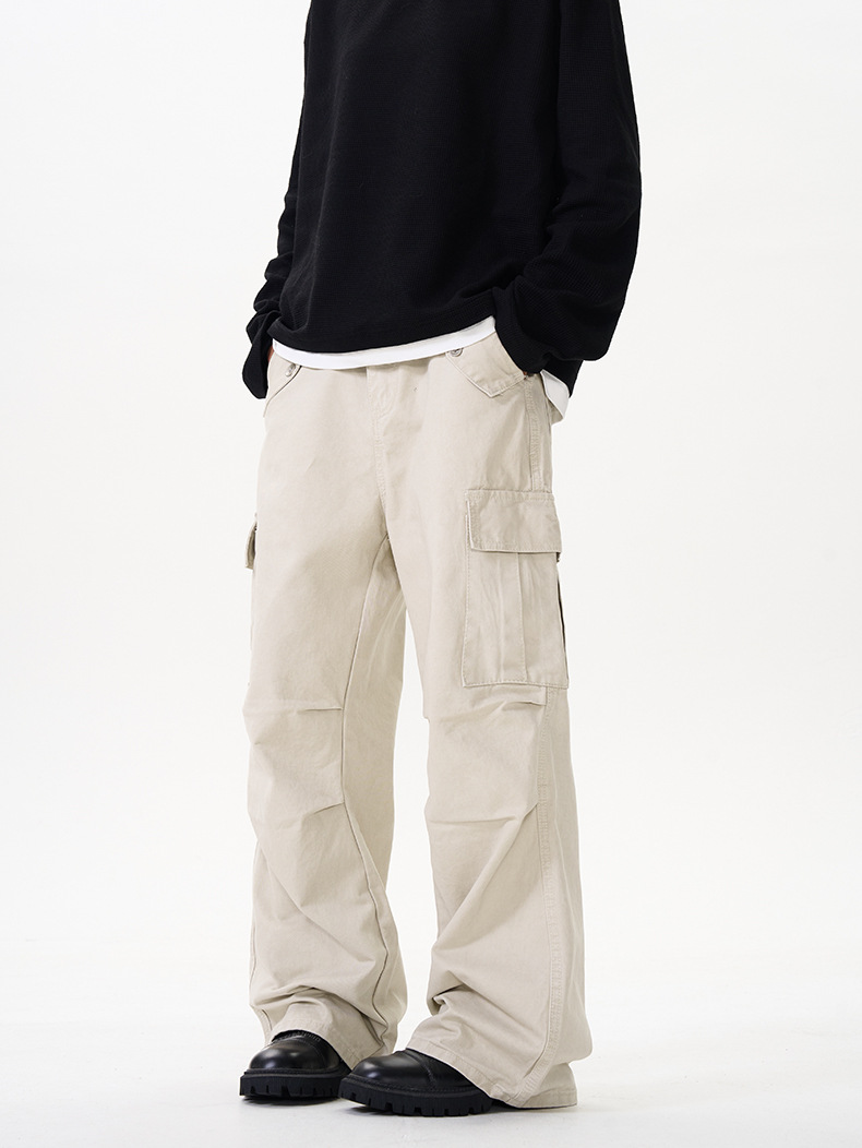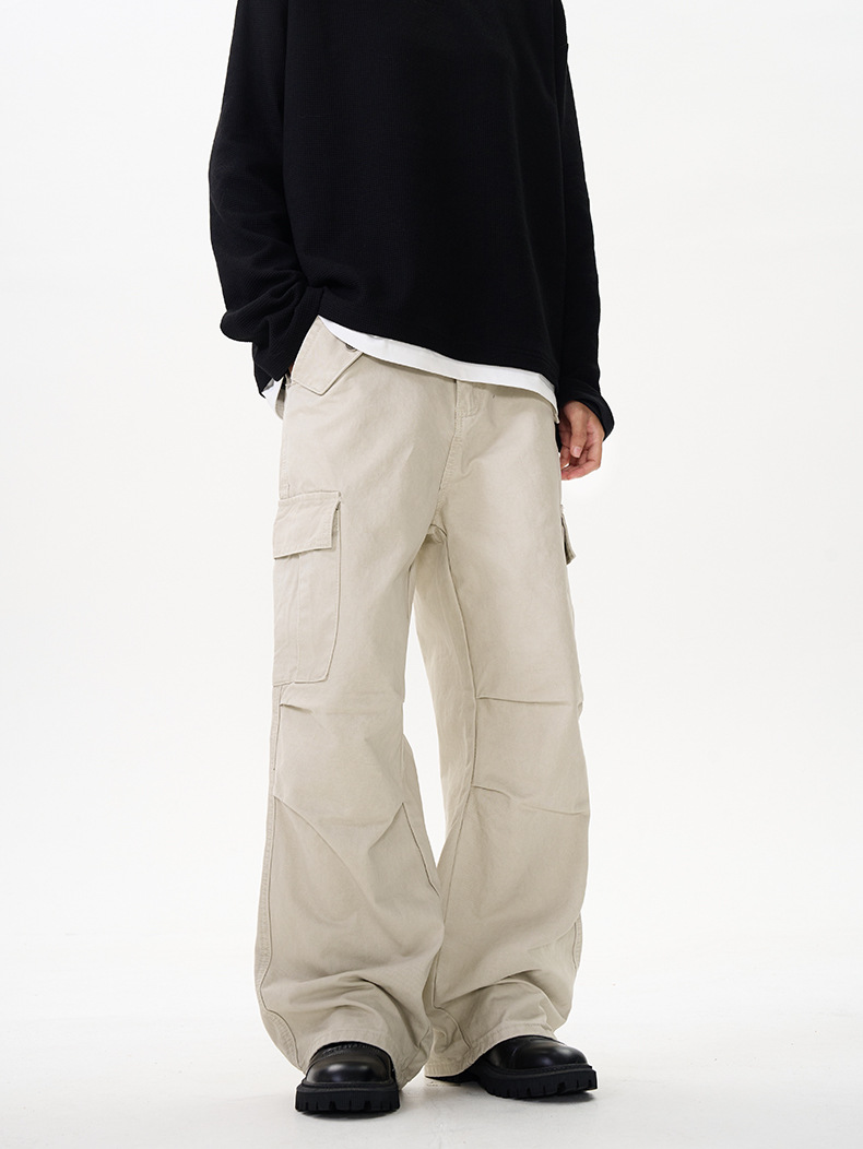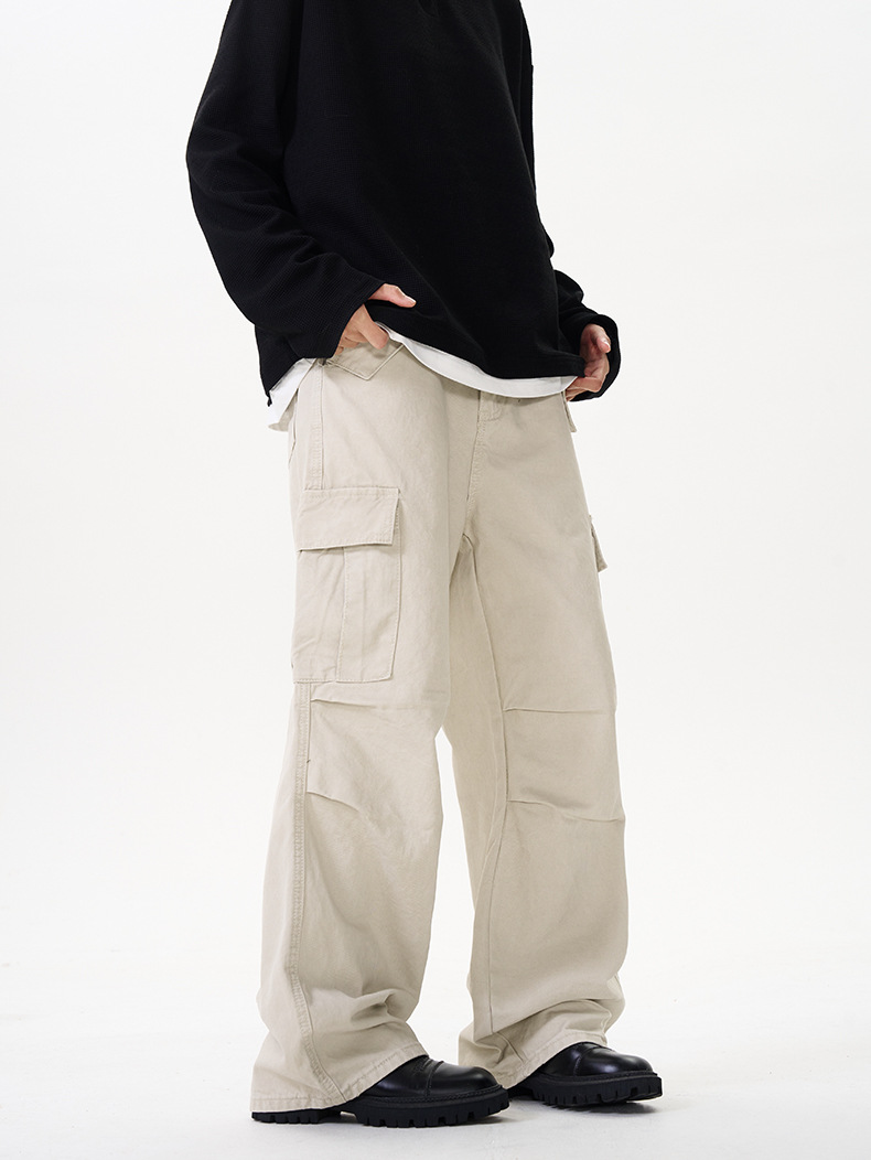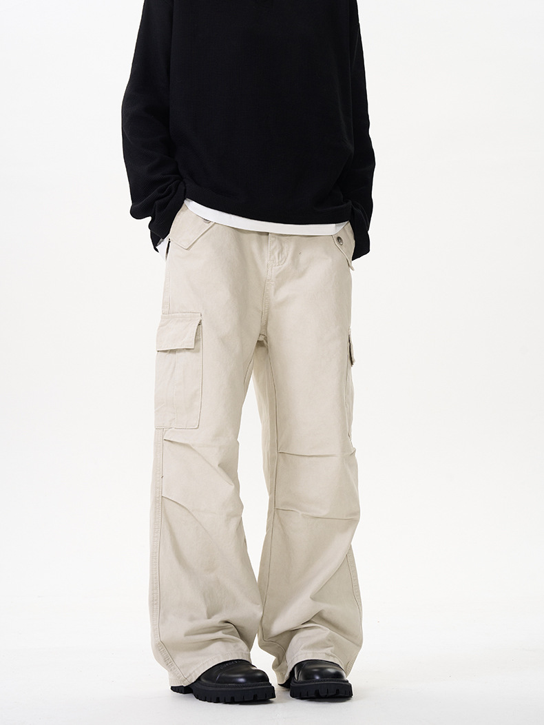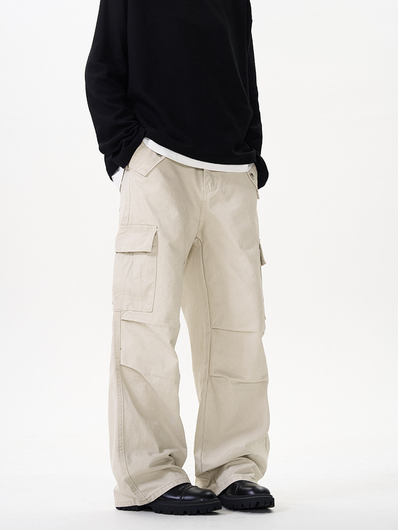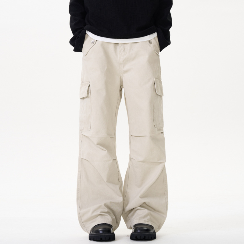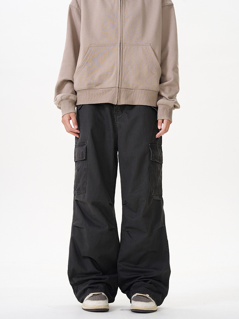 Muqiu Men's Clothing | Maillard 레트로 워싱 디스트레스드 캐주얼 바지 남성용 멀티 포켓 루즈 스트레이트 파라트리퍼 작업복스토어 가기