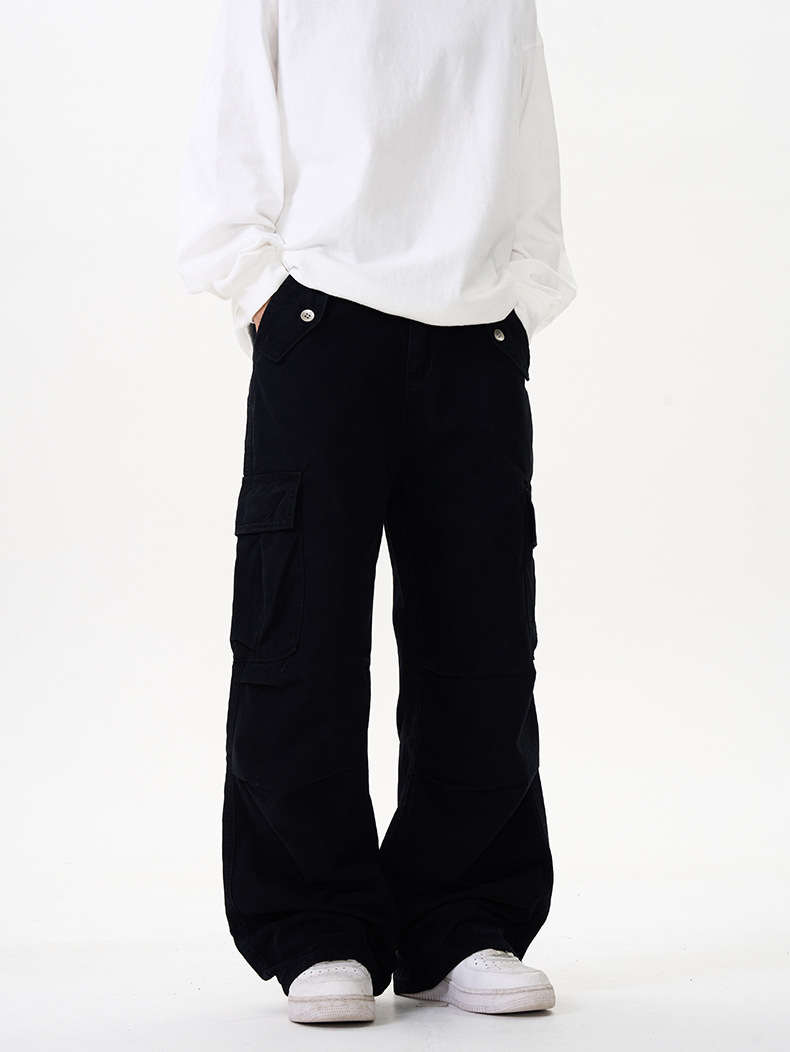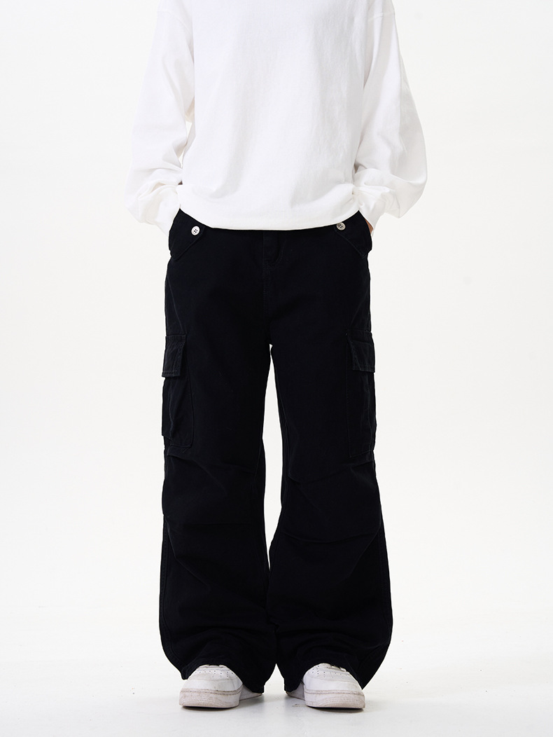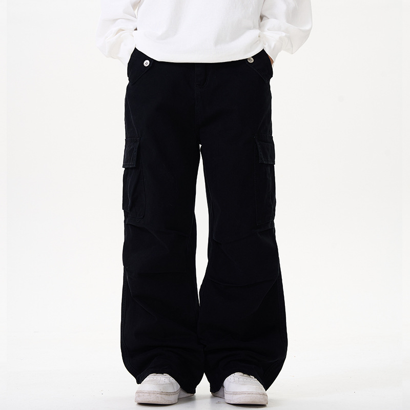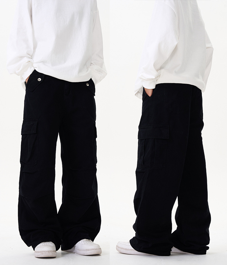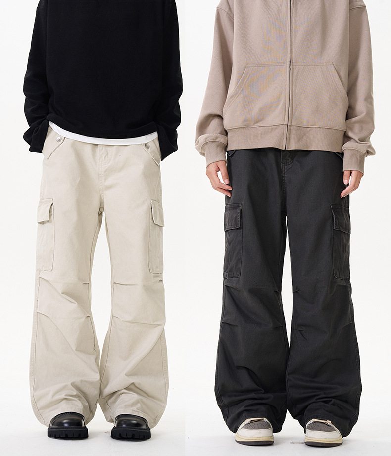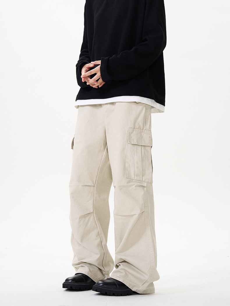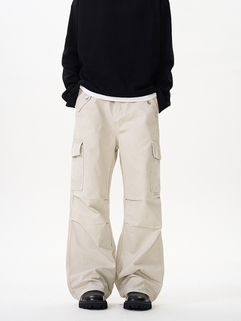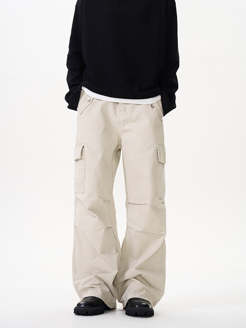 Muqiu Men's Clothing | Maillard 레트로 워싱 디스트레스드 캐주얼 바지 남성용 멀티 포켓 루즈 스트레이트 파라트리퍼 작업복스토어 가기