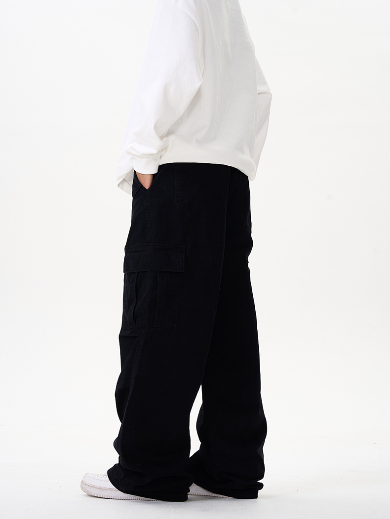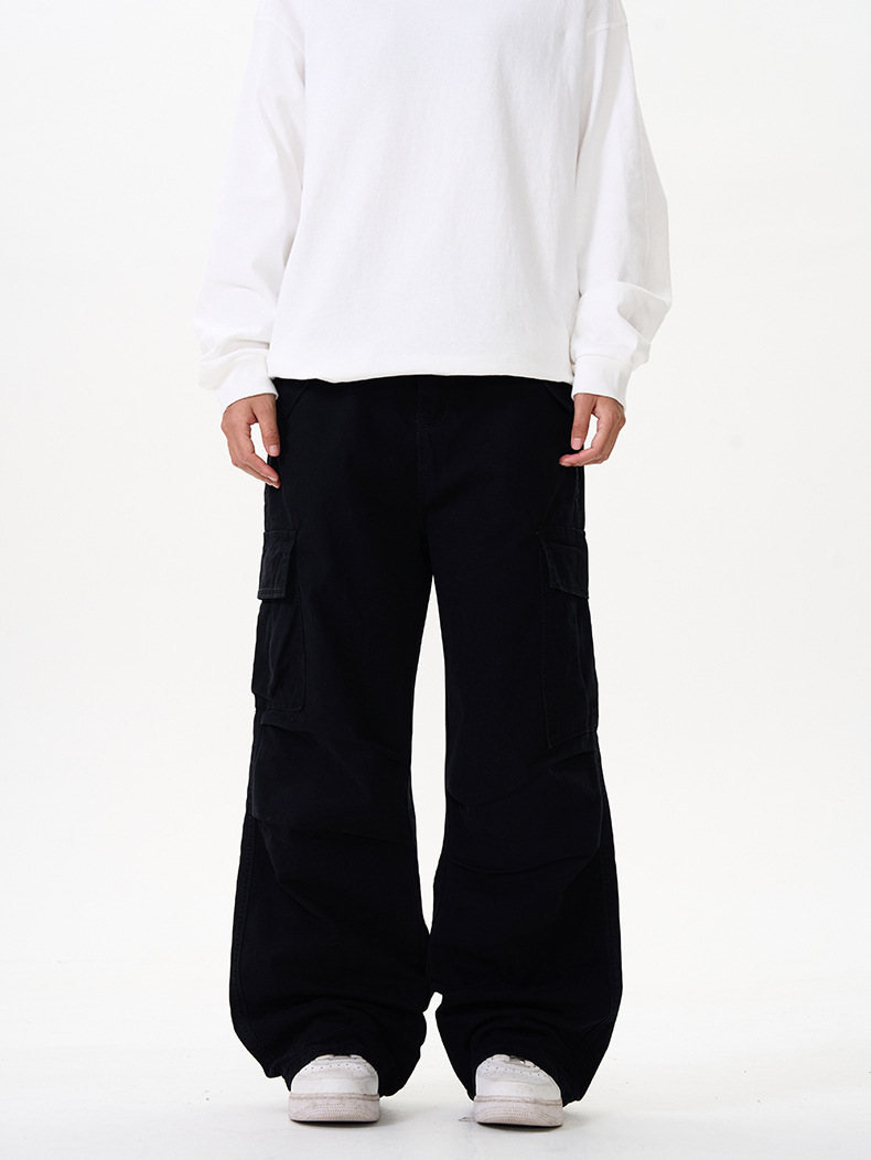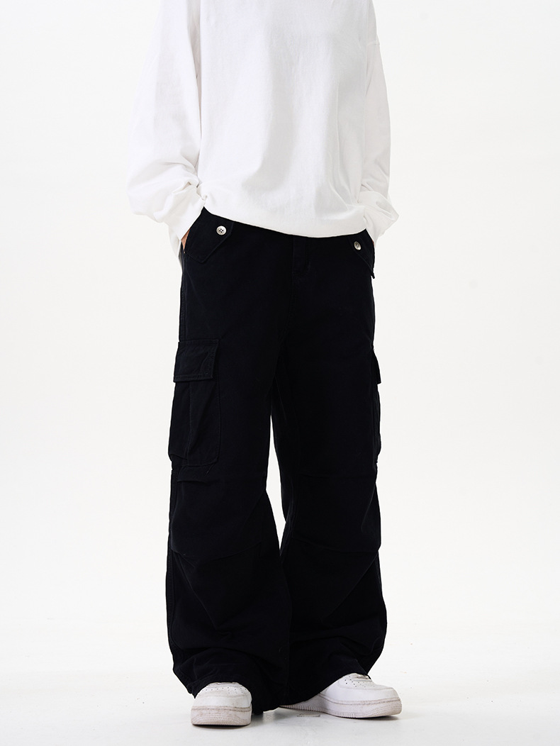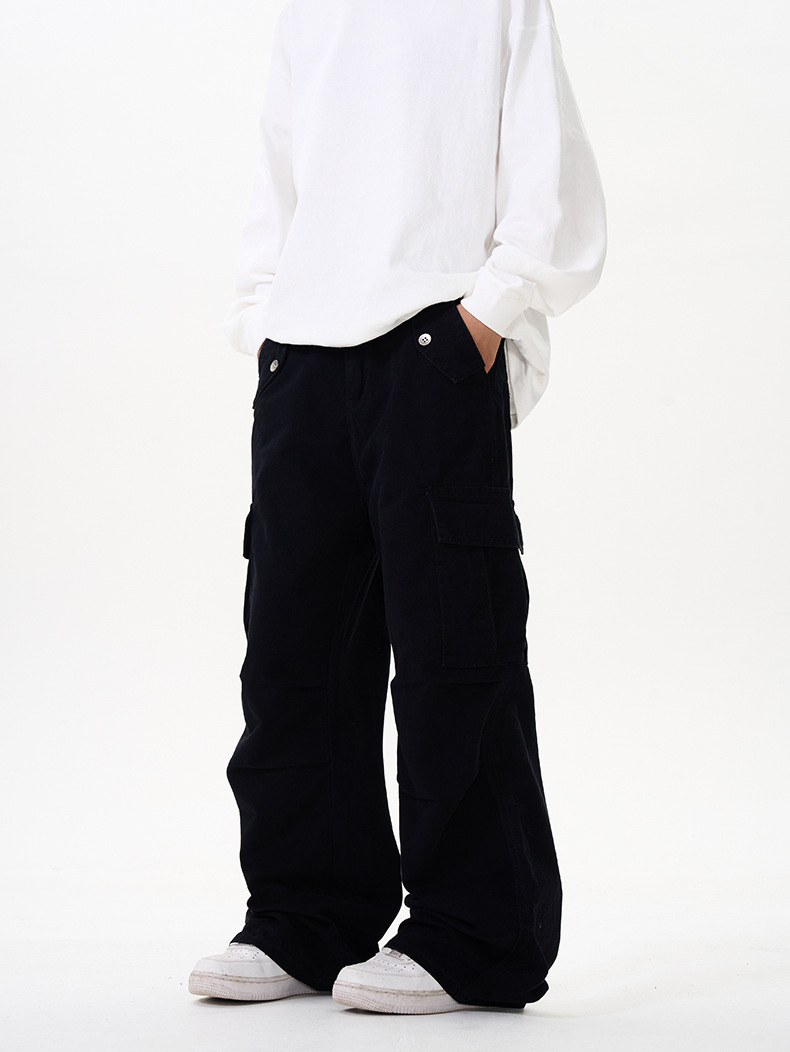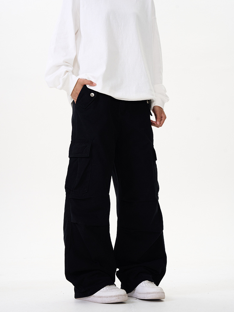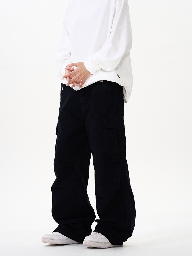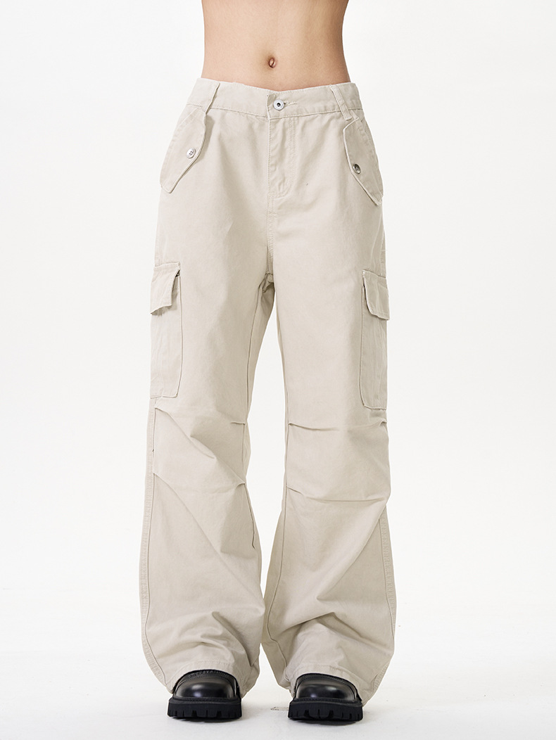 Muqiu Men's Clothing | Maillard 레트로 워싱 디스트레스드 캐주얼 바지 남성용 멀티 포켓 루즈 스트레이트 파라트리퍼 작업복스토어 가기