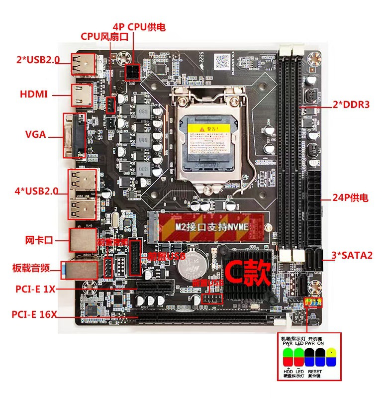 全新现货批发(支持自取) intel H61 支持1155针全系列处理器,板载HDMI高清接口。板载6个高速USB接口,支持DDR3 1066/1333/1600系列内存。最大可支持到16GB,主板尺寸:19cm*17cm