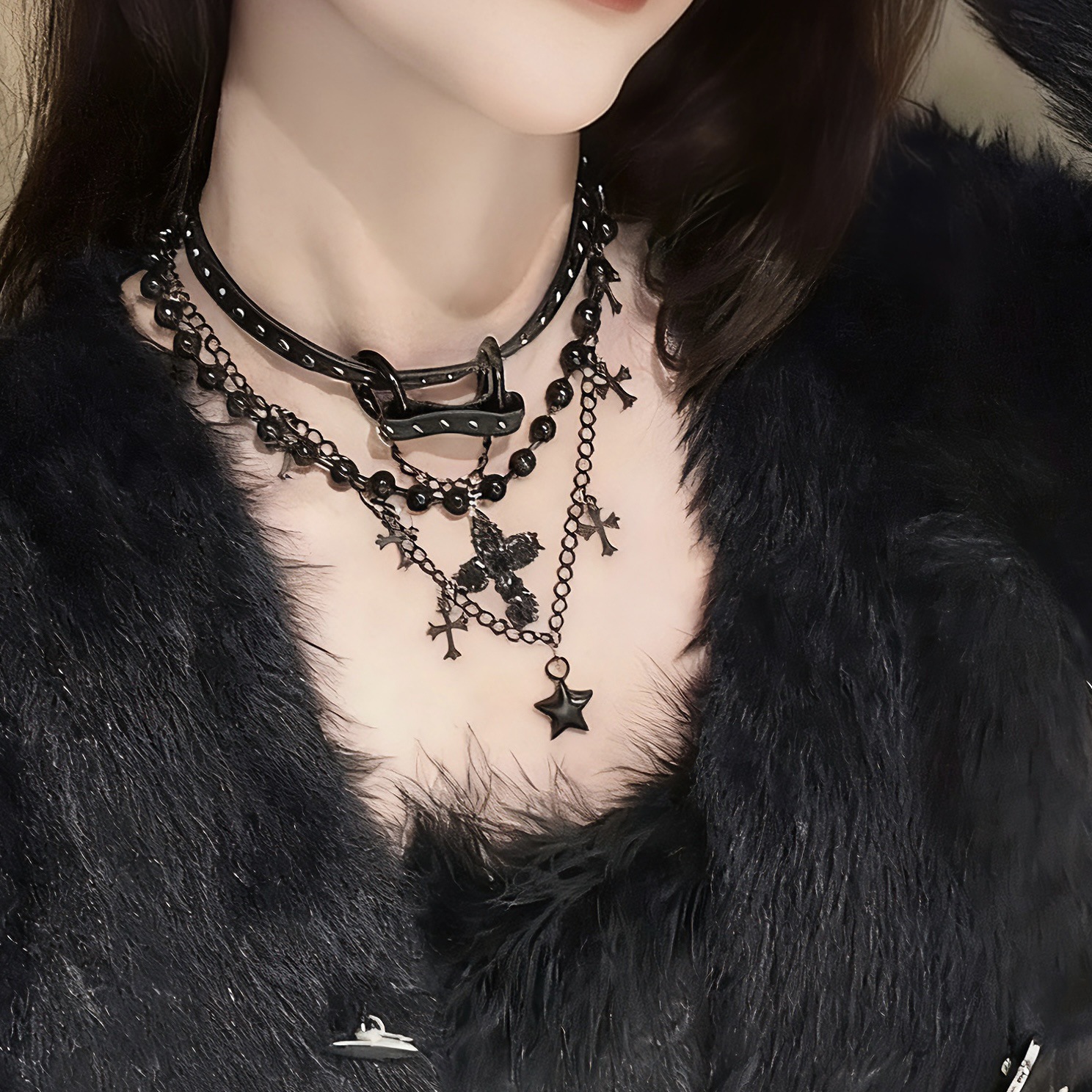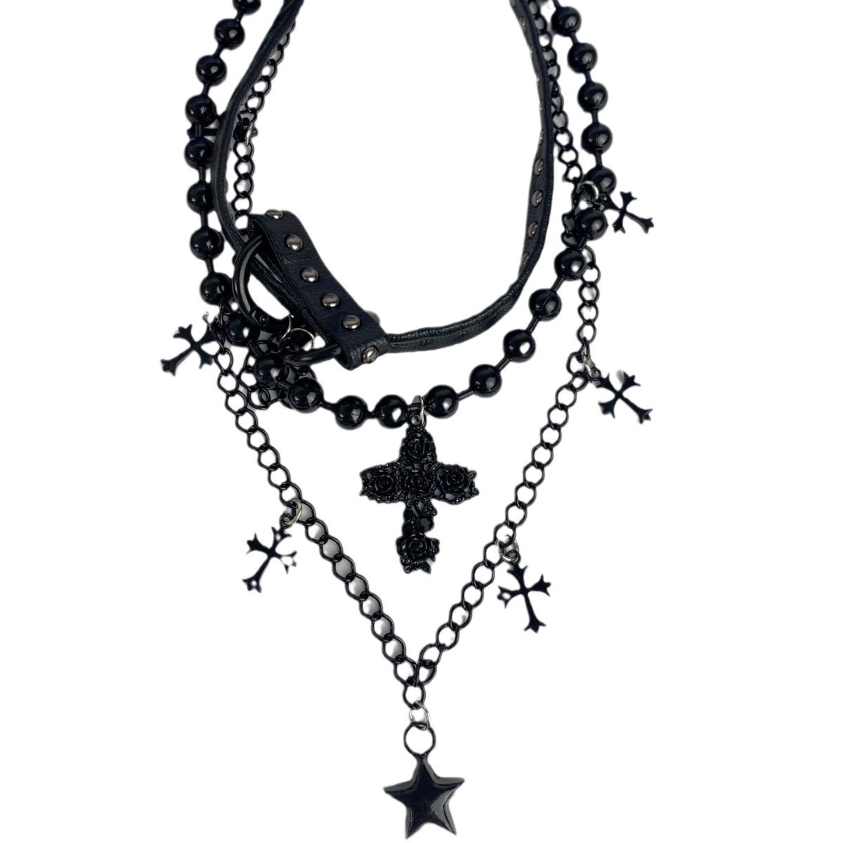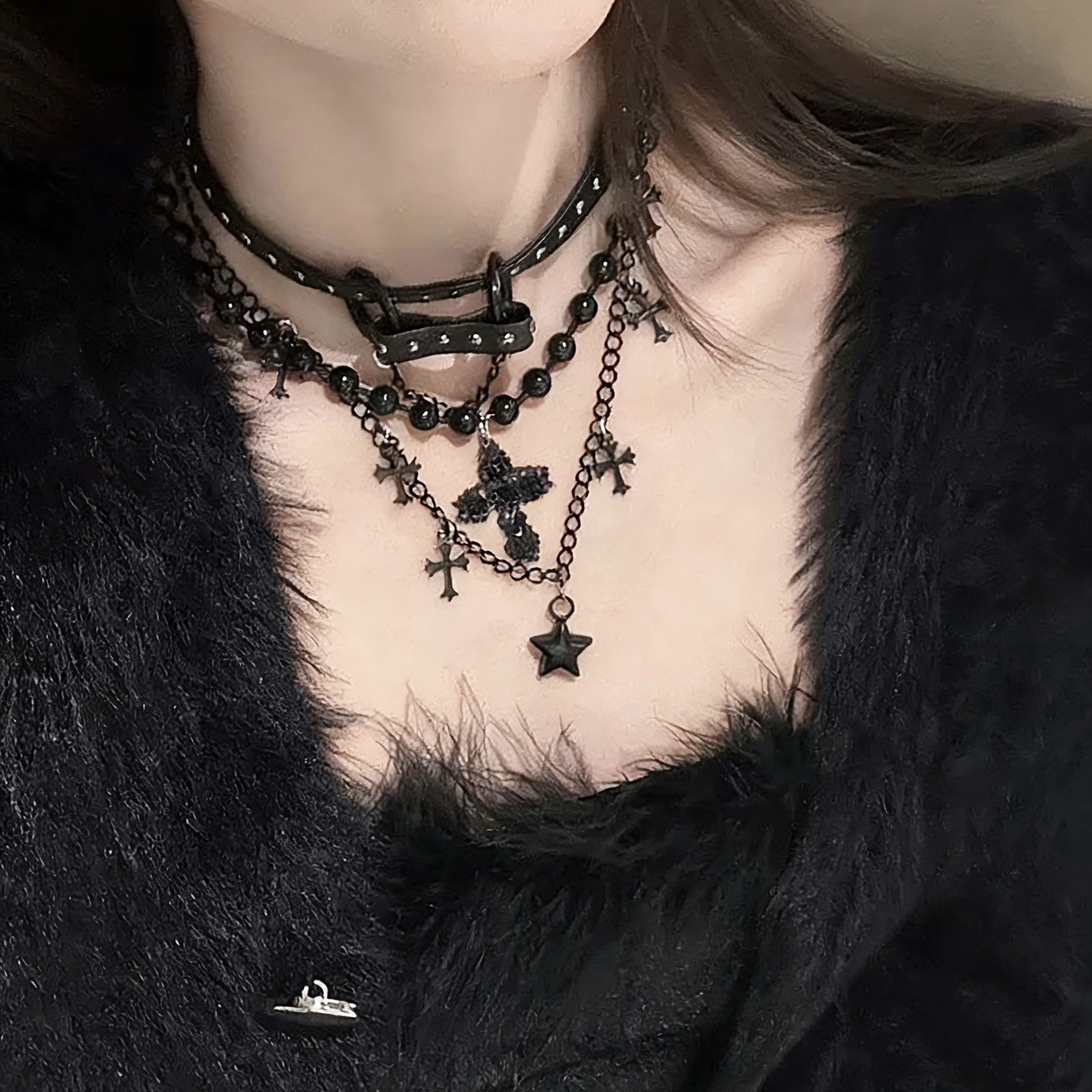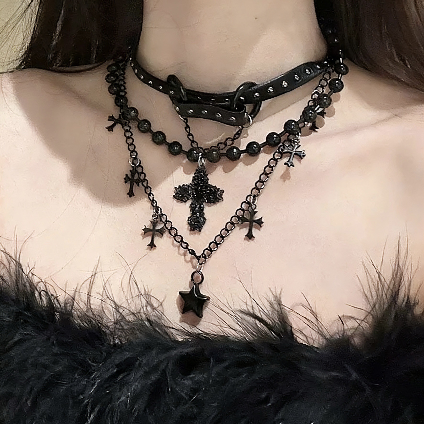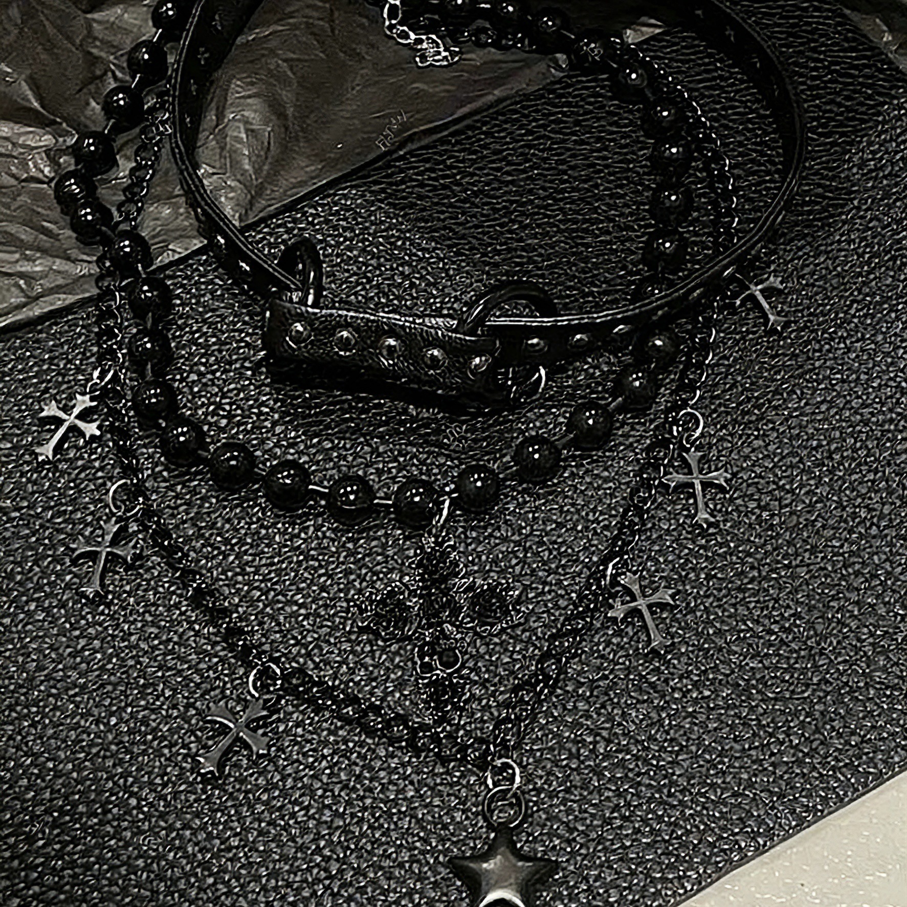 고딕 스타일 달콤한 쿨 크로스 멀티 레이어 목걸이 여성 레트로 펑크 서브 컬처 구슬 쇄골 체인 초커 목걸이 체인