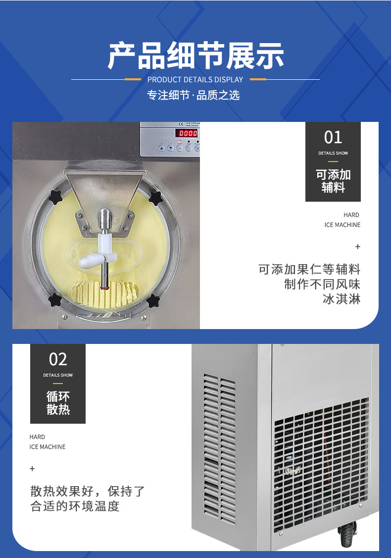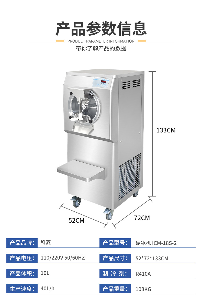 하드 아이스크림 기계, 아이스크림 믹서, 스테인리스 스틸 상업용 수직 디저트 아이스크림 기계