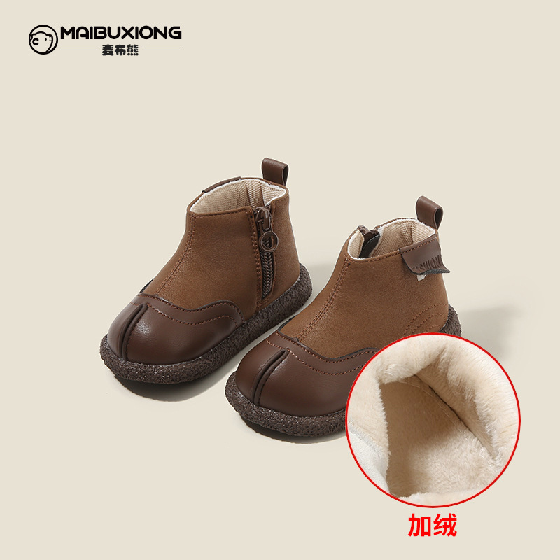 Maibu Bear 가을 겨울 아기 신발 기모 소녀 Martins 부츠 소년 레트로 가죽 부츠 아기 어린이 유아 신발