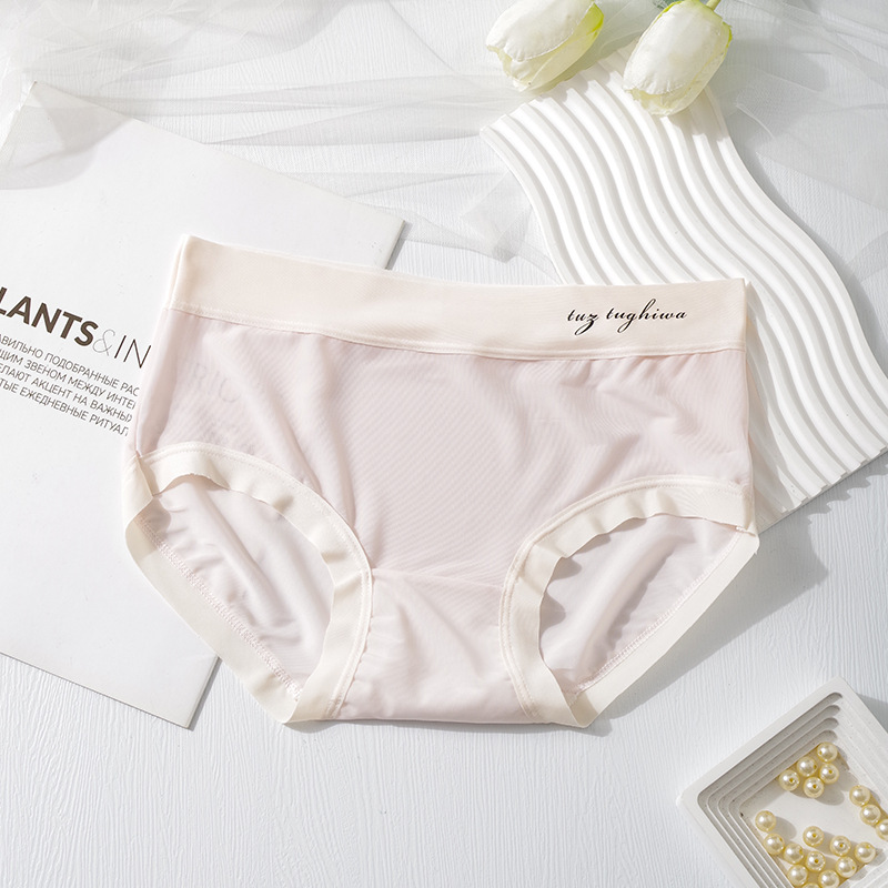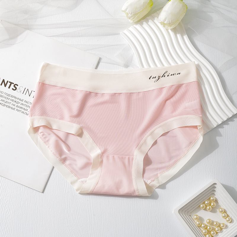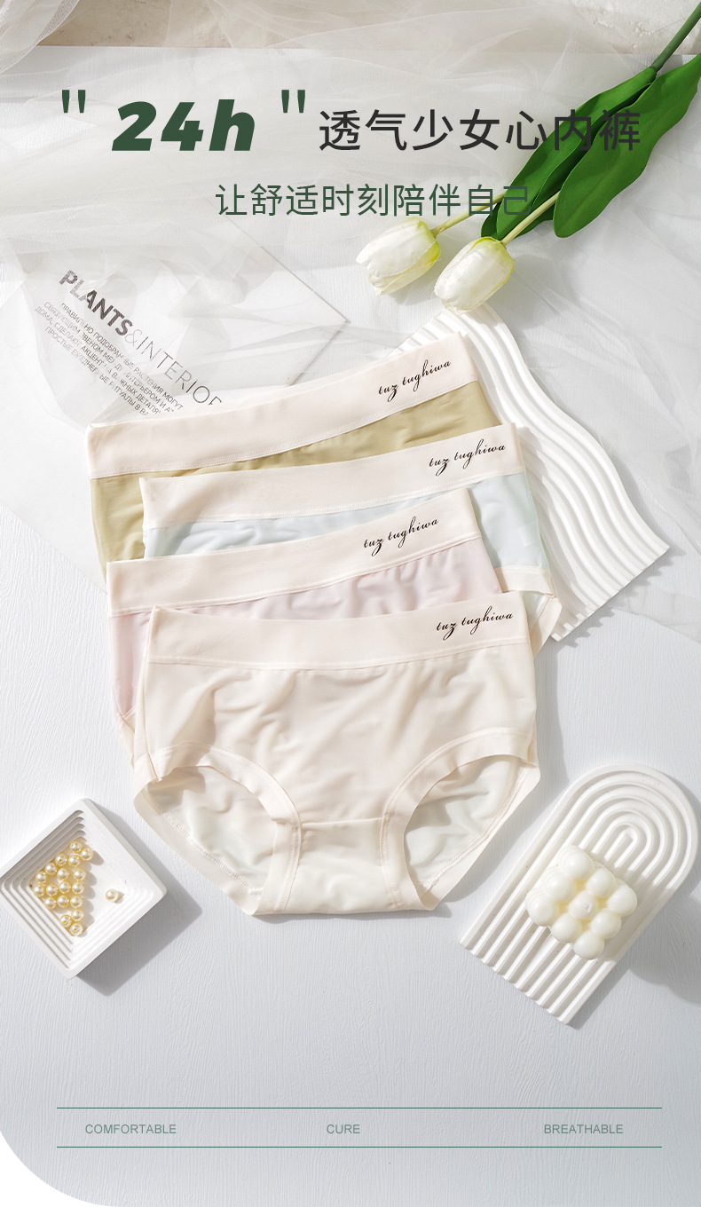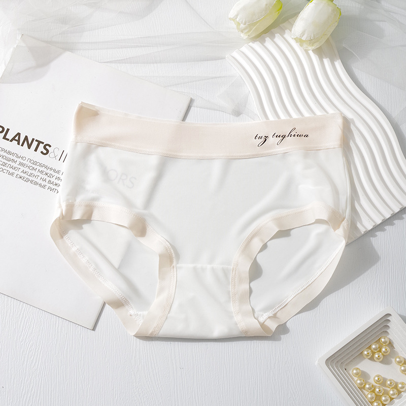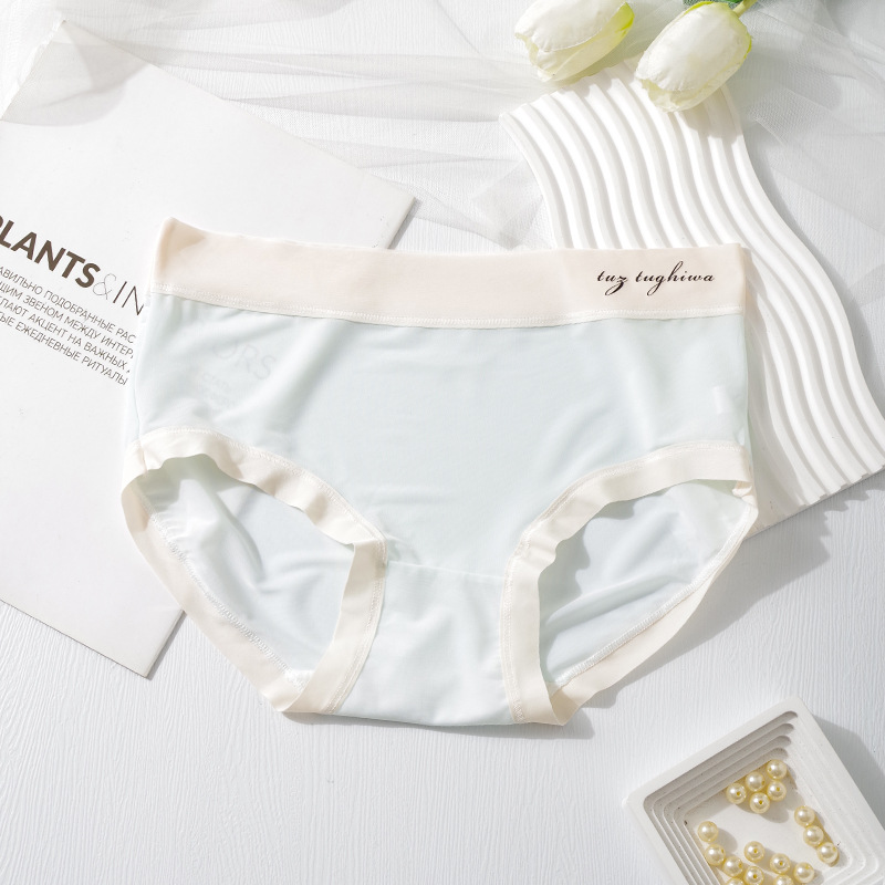 여성용 공장 아이스 실크 속옷, 무봉제 마스크 팬츠, 중간 허리 면 10A 항균 가랑이 통기성 학생 소녀용 팬티