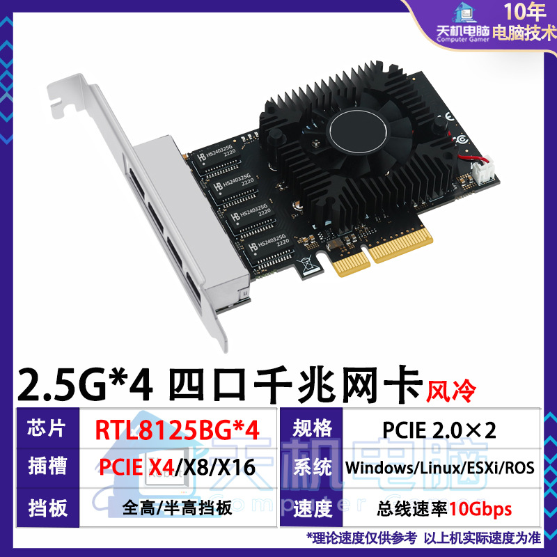 4 포트 2.5G 네트워크 카드 PCIE 기가비트 유선 네트워크 카드 데스크톱 컴퓨터 8125BG 이더넷 그룹 글로우 diskless 시작스토어 가기