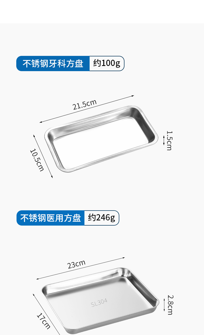 304 스테인레스 스틸 의료 사각 트레이 의료 트레이 뷰티 살롱 소독 트레이 수술 트레이 드레싱 변경 악기 트레이 안티 iodophor