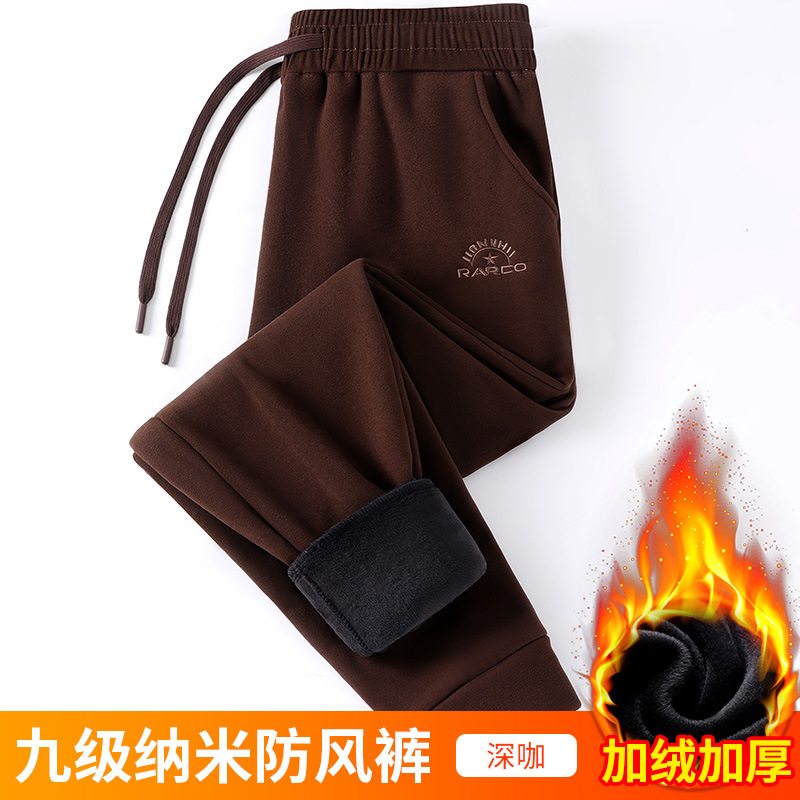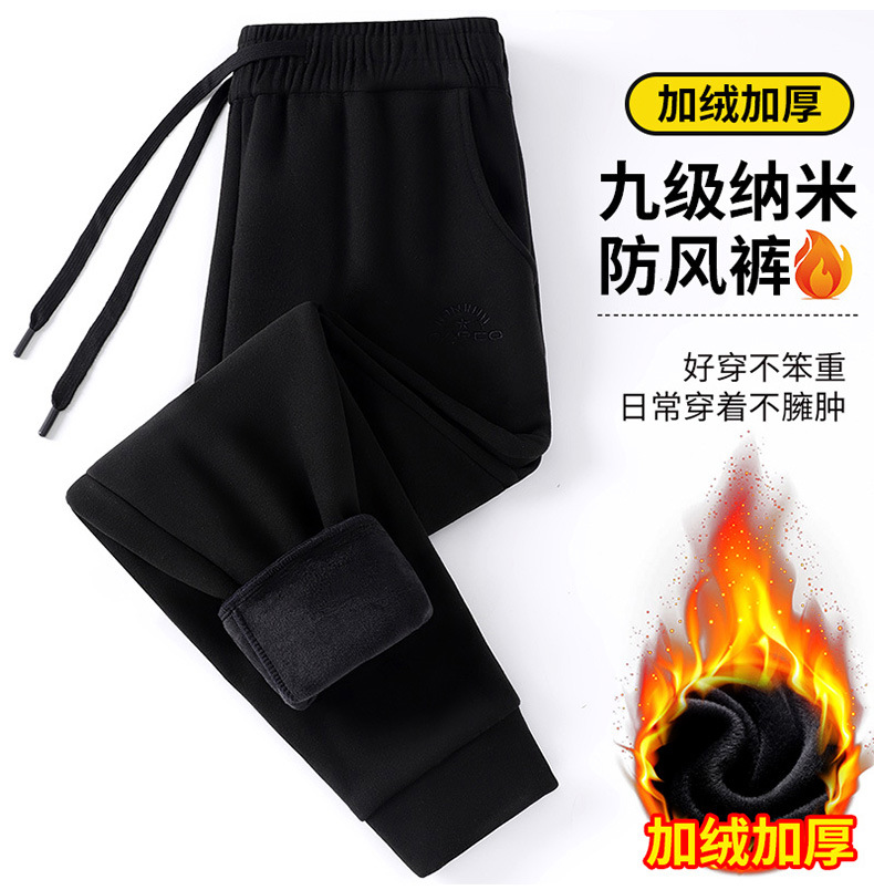 엄선된 9단계 방풍 바지, 루즈핏 가을 겨울 커플용 기모 바지, 남성용 두꺼운 스포츠 빅사이즈 조거 팬츠