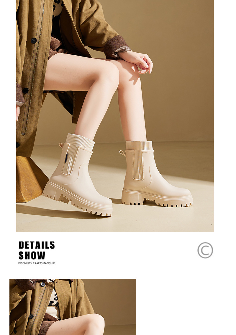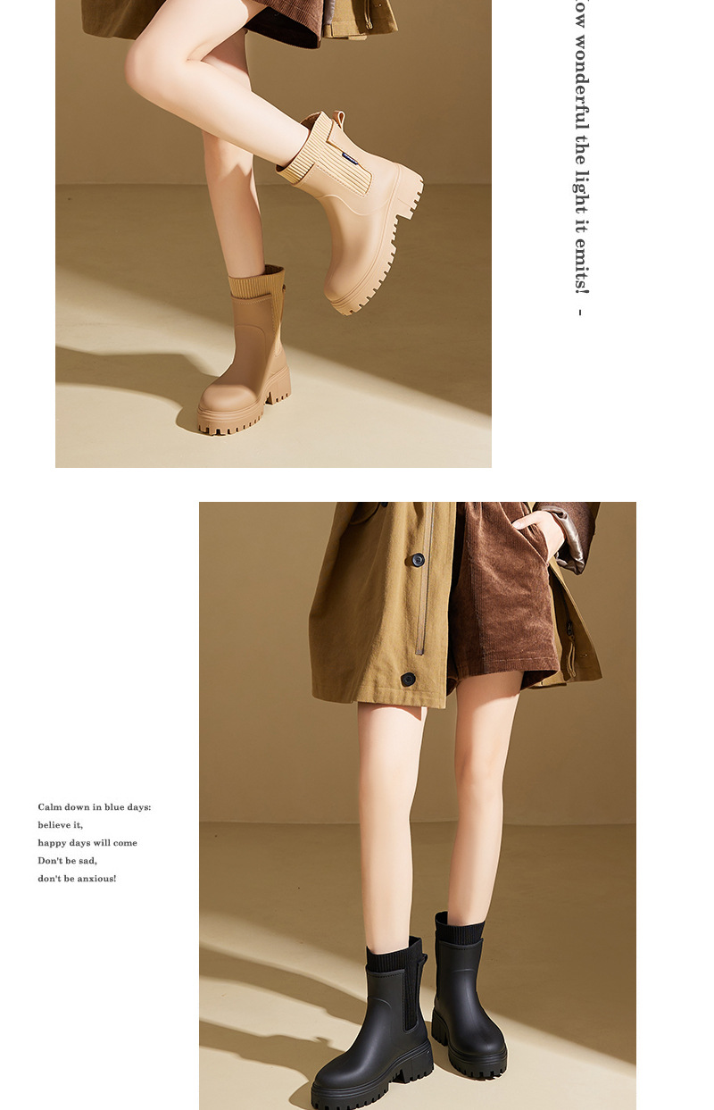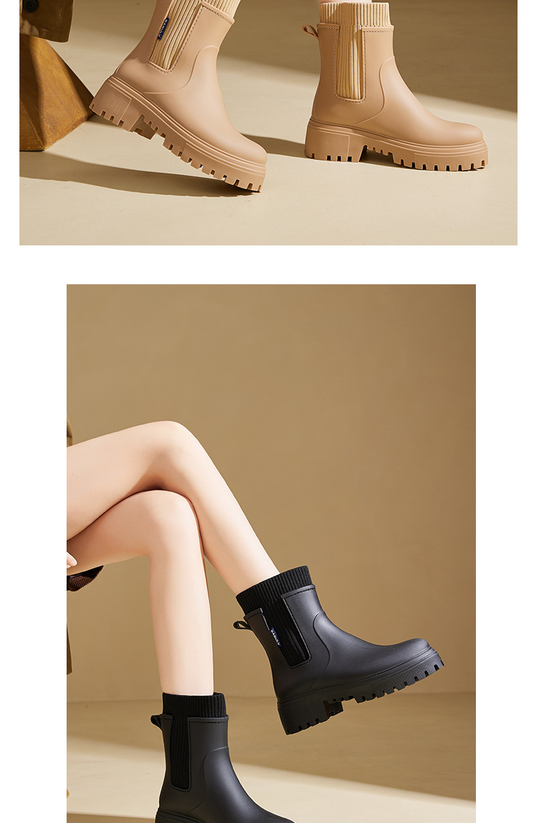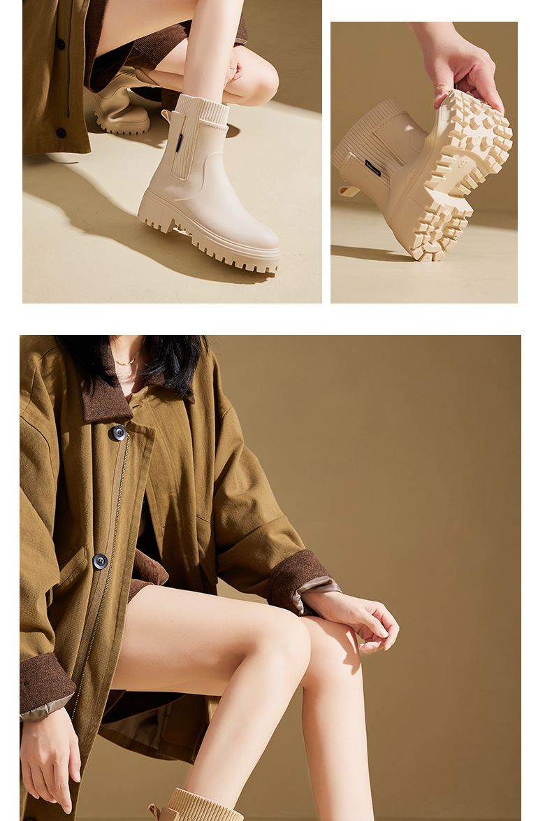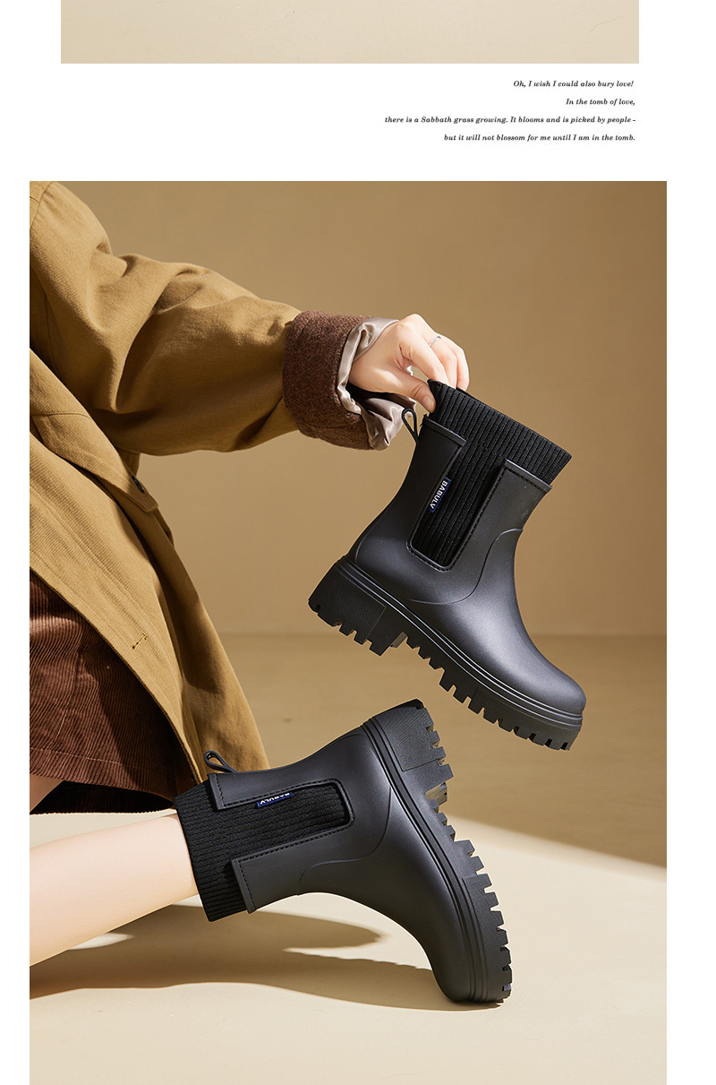 2025 여성용 신축성 있는 레인부츠, 미드컷 레인부츠, 첼시 방수, 미끄럼 방지, 비오는 날 야외에서 착용 가능한 미드컷 부츠스토어 가기