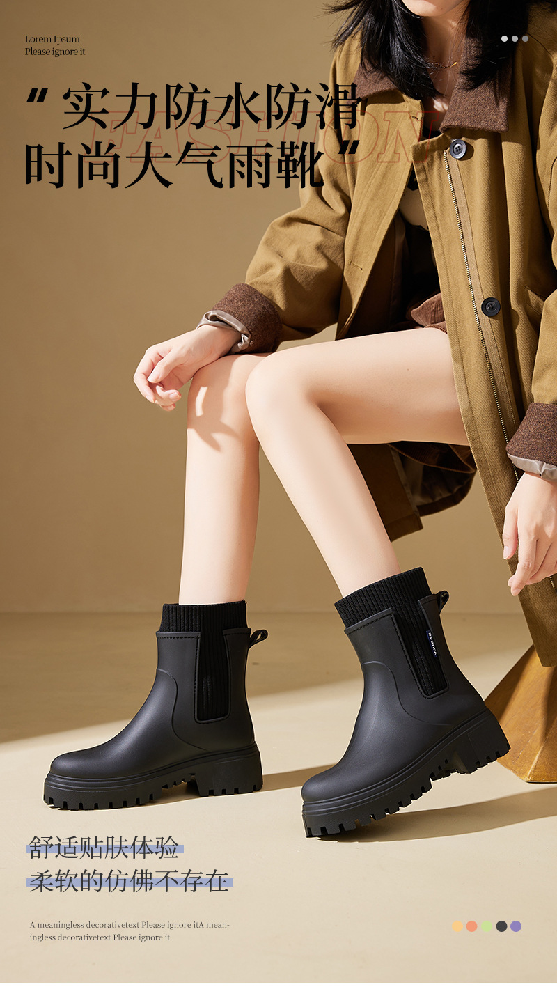 2025 여성용 신축성 있는 레인부츠, 미드컷 레인부츠, 첼시 방수, 미끄럼 방지, 비오는 날 야외에서 착용 가능한 미드컷 부츠