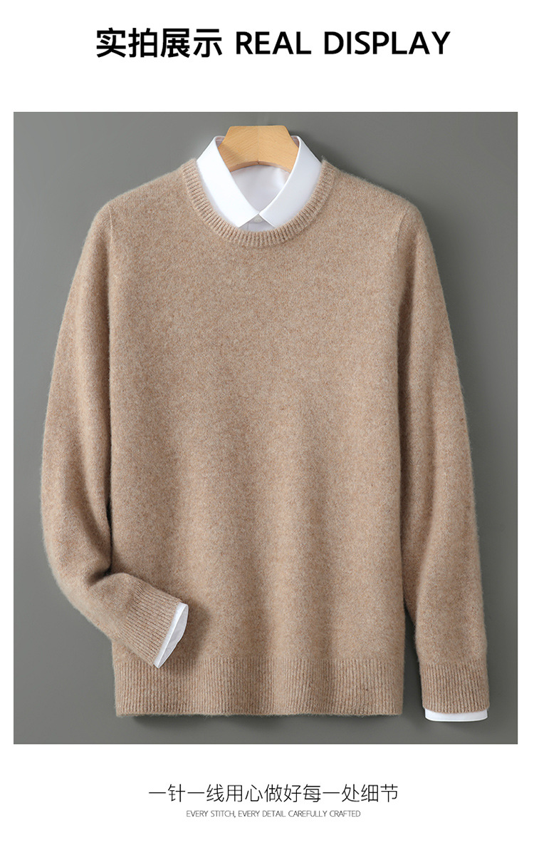 남자 캐시미어 스웨터 피부 친화적 인 크루 넥 비즈니스 캐주얼 스웨터 가을과 겨울베이스 니트 스웨터 100 호주 울 크루 넥