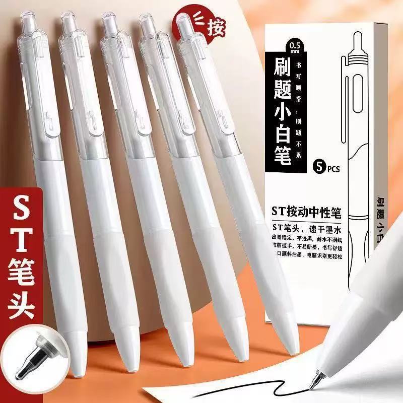 빠른 건조 브러시 질문은 작은 흰색 펜 st 머리를 높은 색상 값으로 누르십시오 0.5 학생들은 시험 브러시 질문 프레스 젤 펜을 가져야합니다.