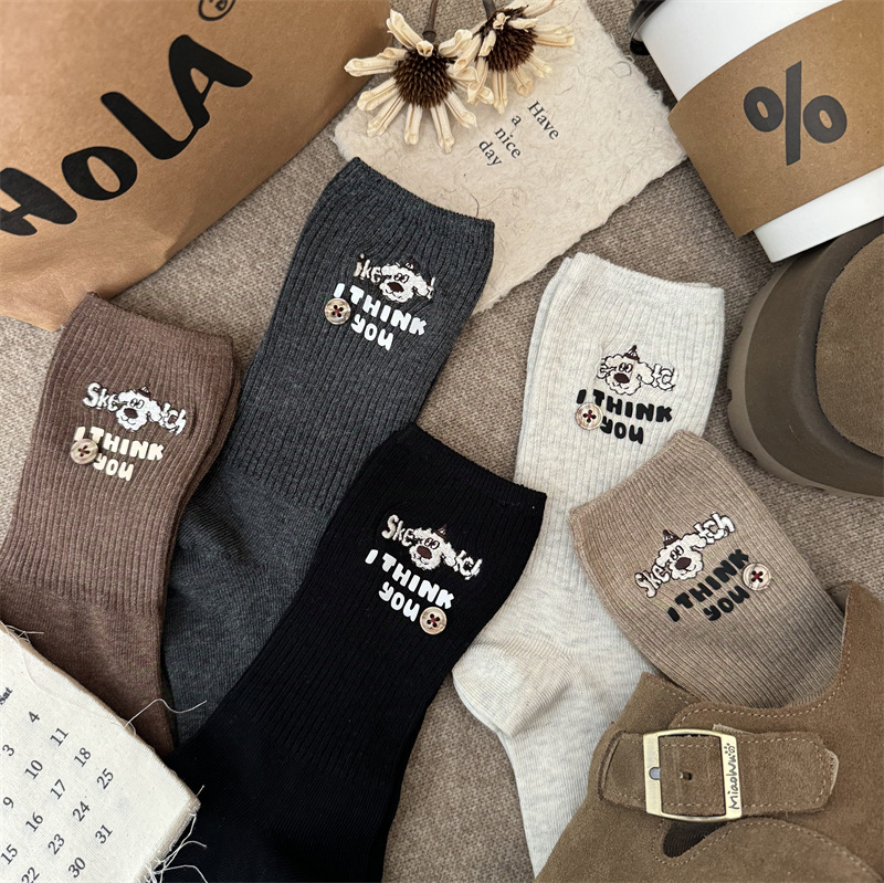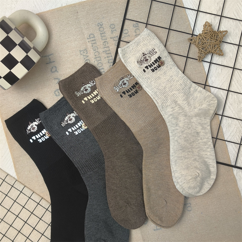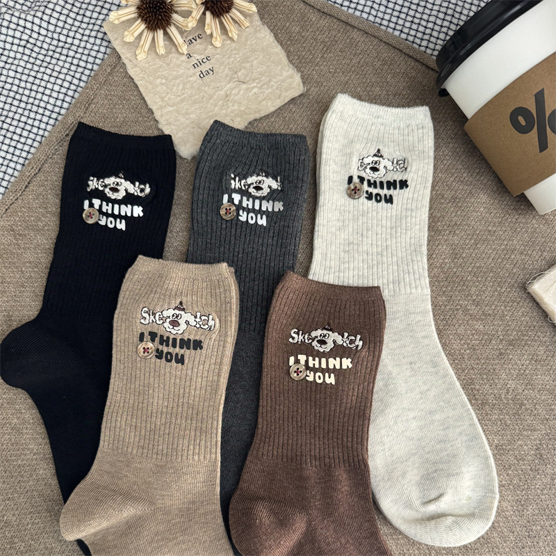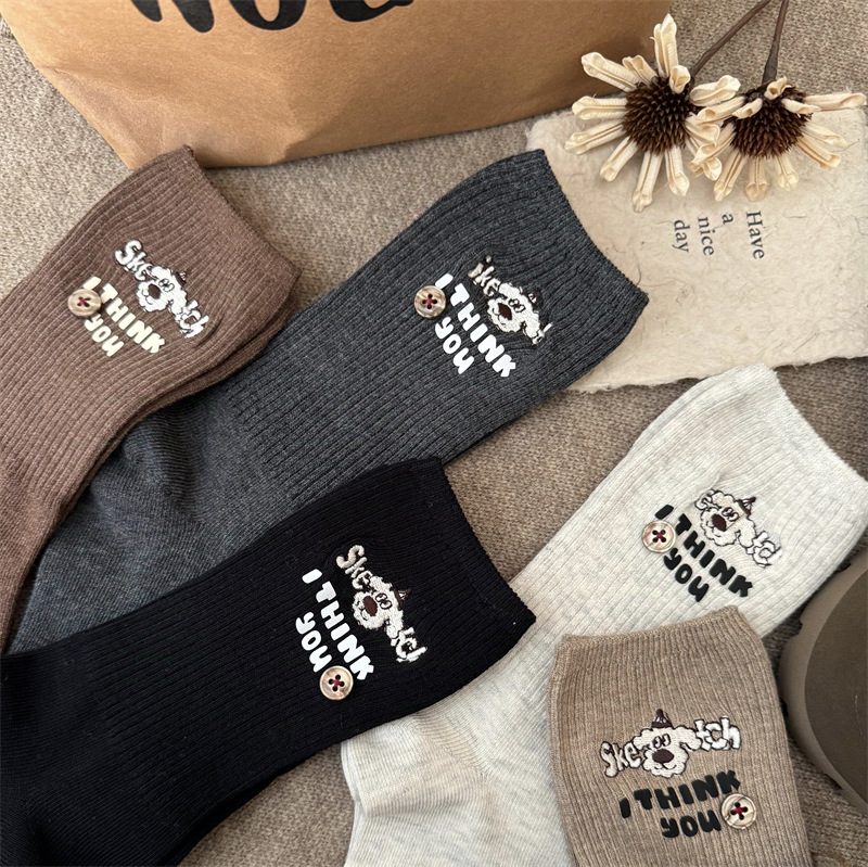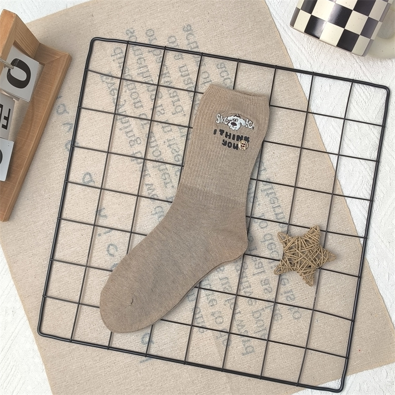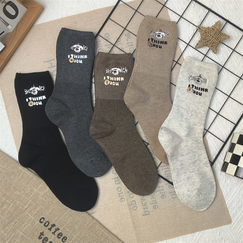 일본식 복고풍 만화 강아지 자수 영어 모든 경기 간단한 캐주얼 대학 스포츠 면화 유행 여자 미드 양말스토어 가기