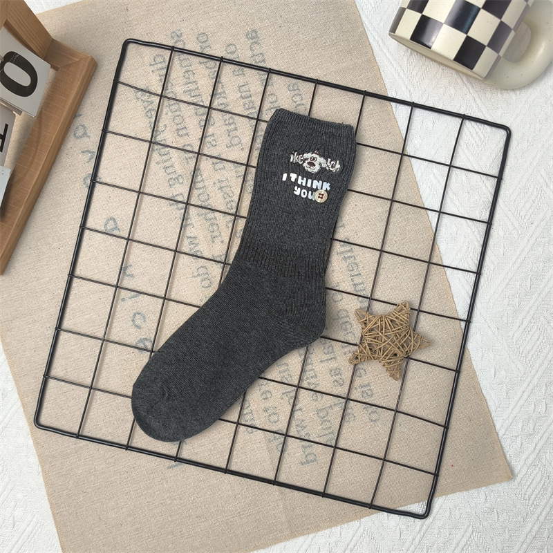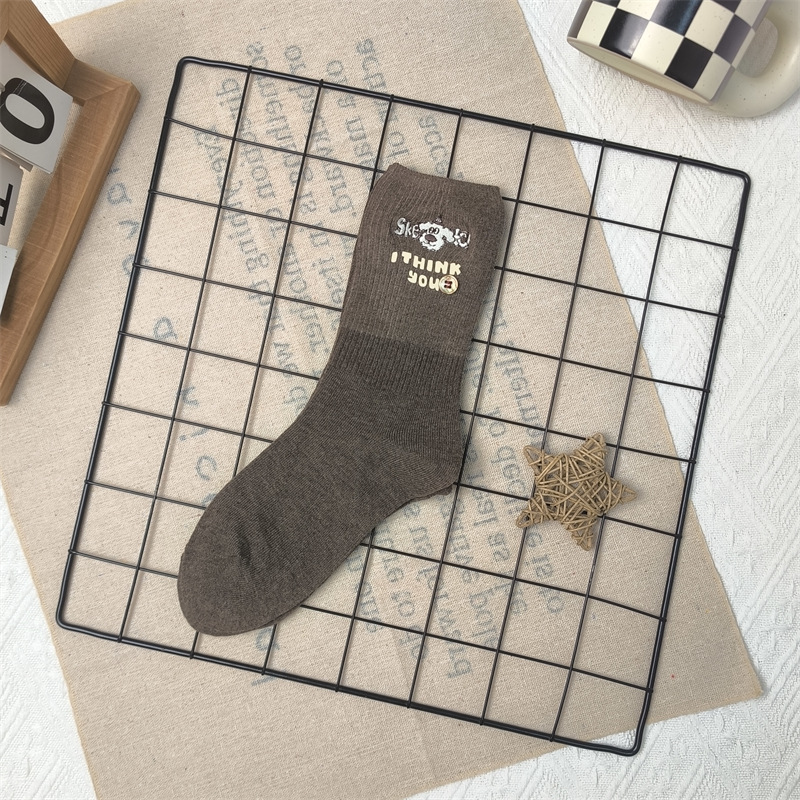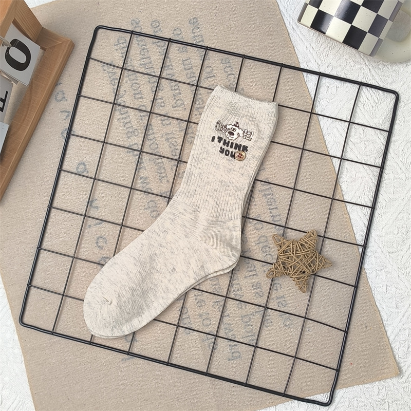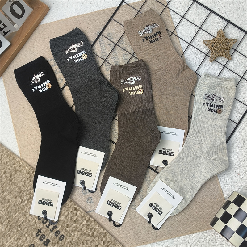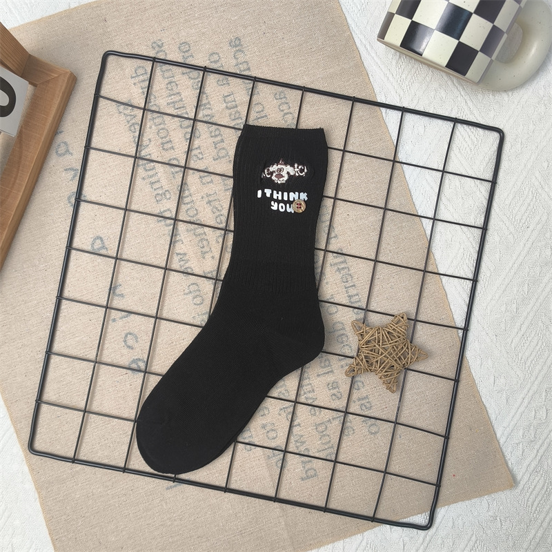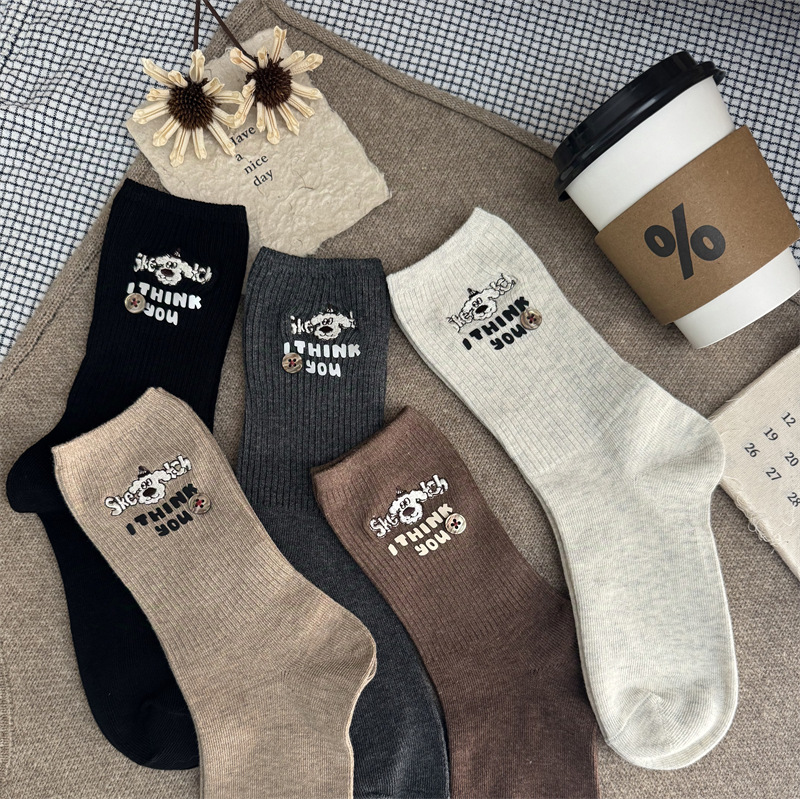 일본식 복고풍 만화 강아지 자수 영어 모든 경기 간단한 캐주얼 대학 스포츠 면화 유행 여자 미드 양말스토어 가기