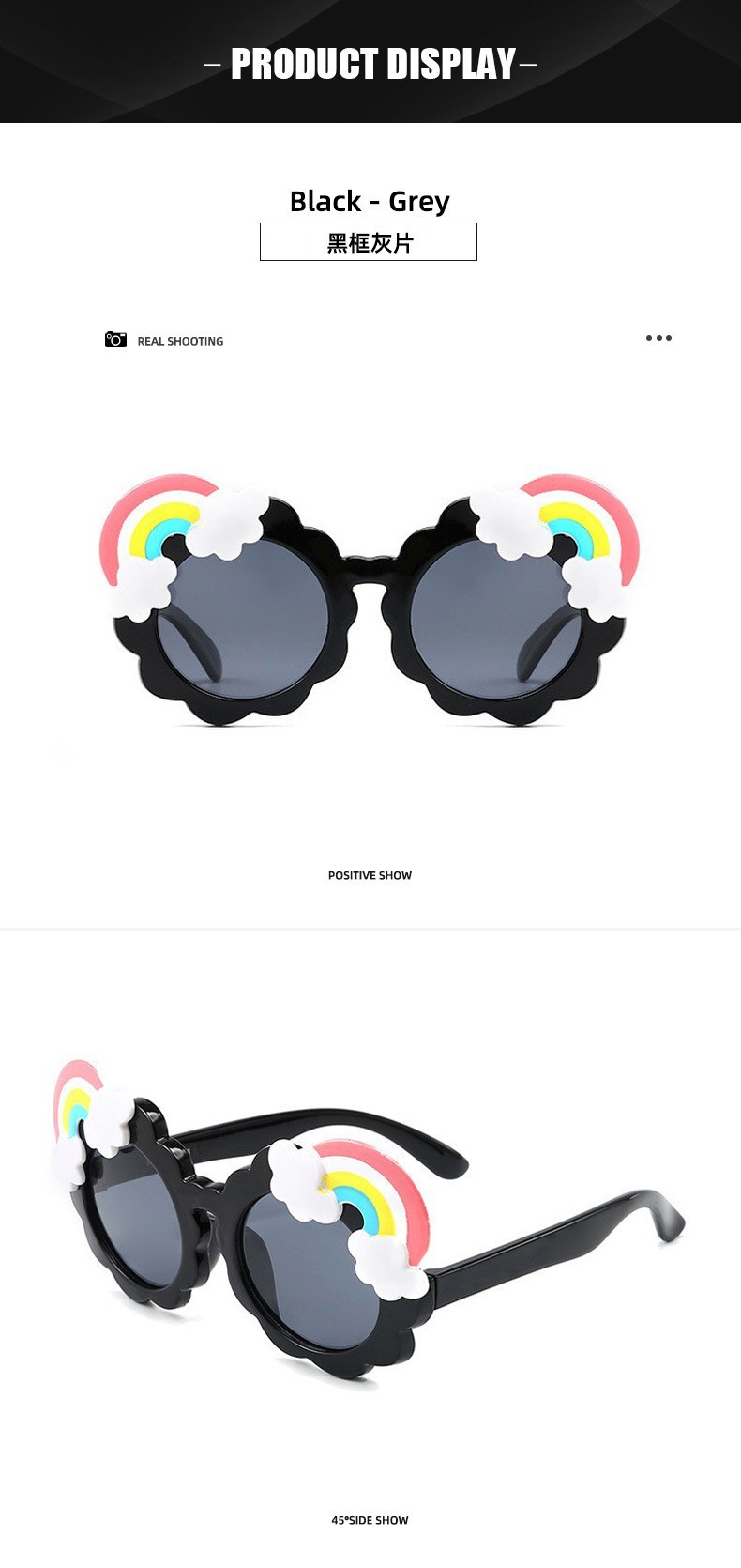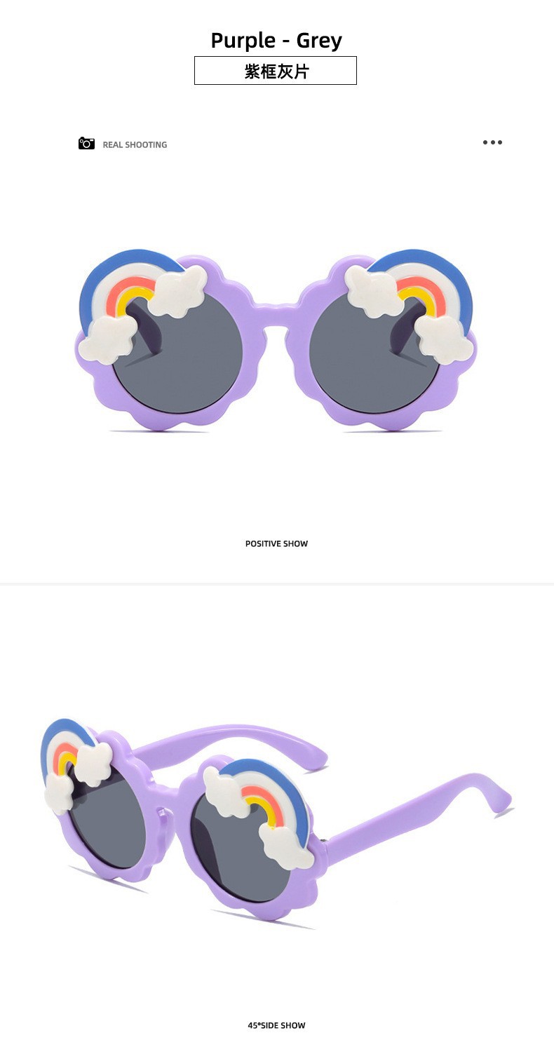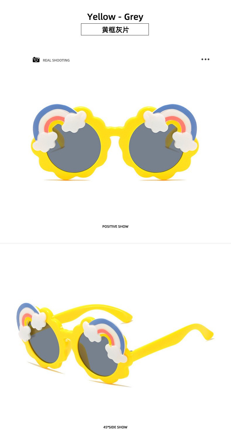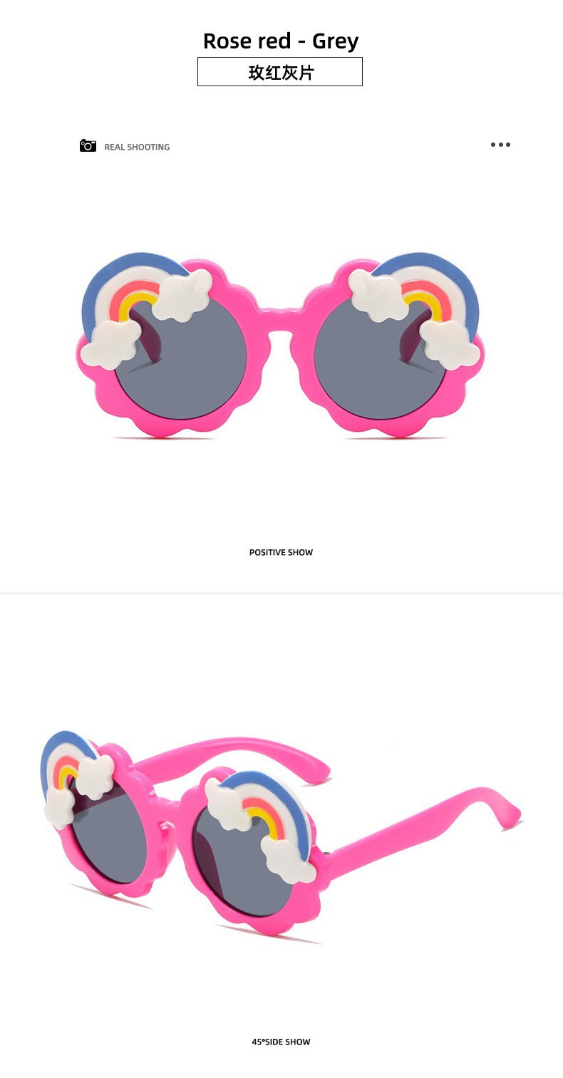 어린이 선글라스 무지개 선글라스 개인화 된 만화 귀여운 아기 차양 장식 UV 보호 소년 소녀 사진