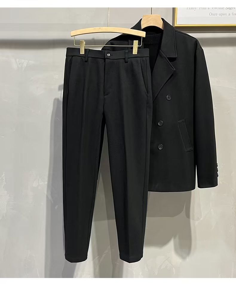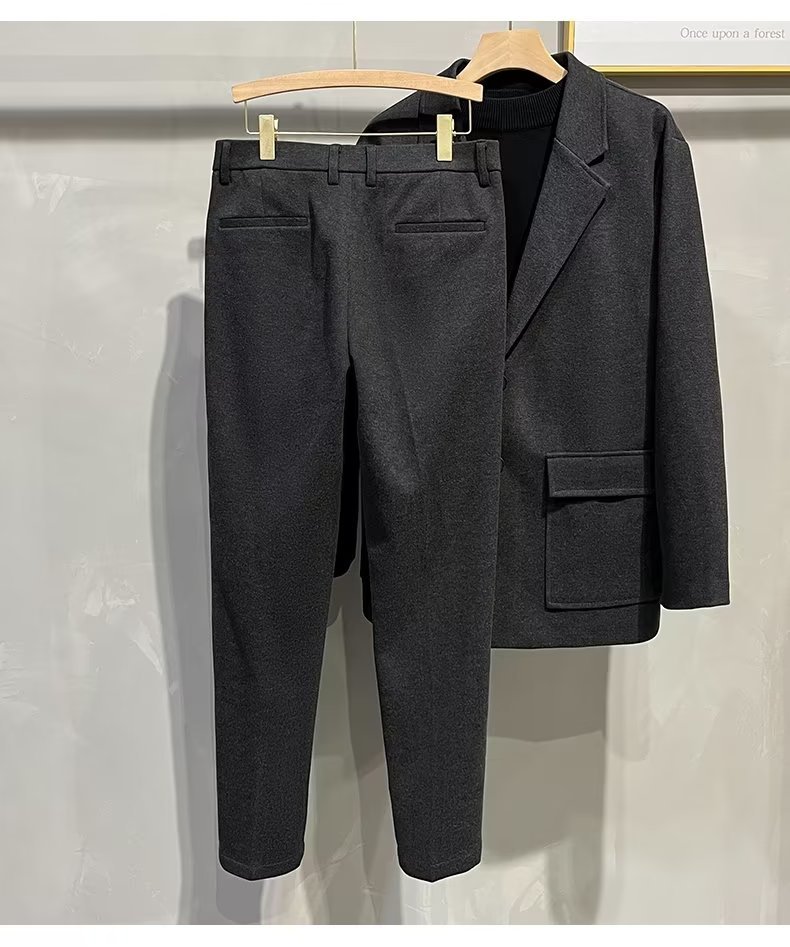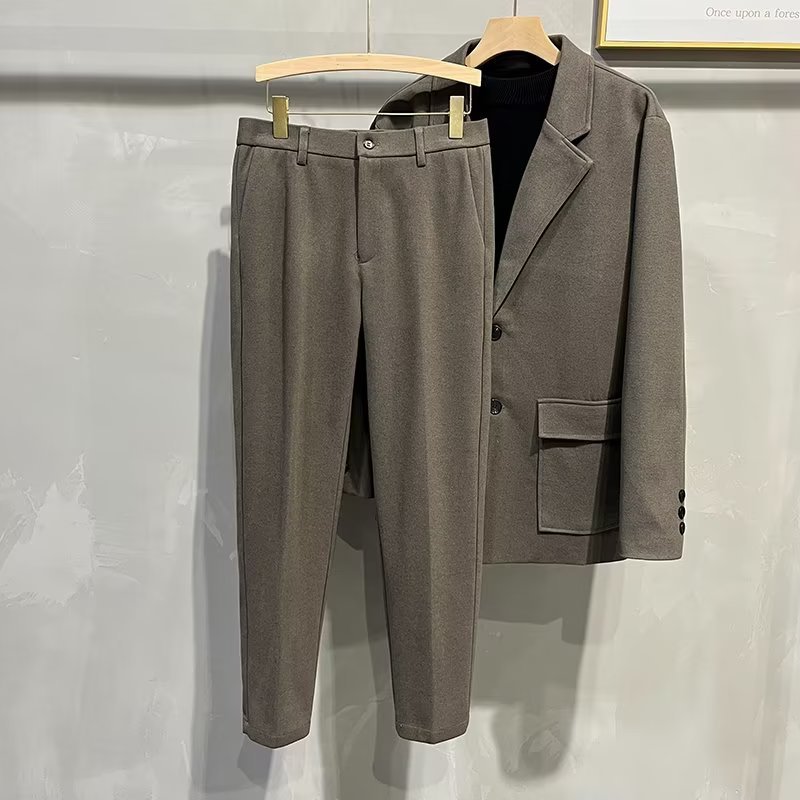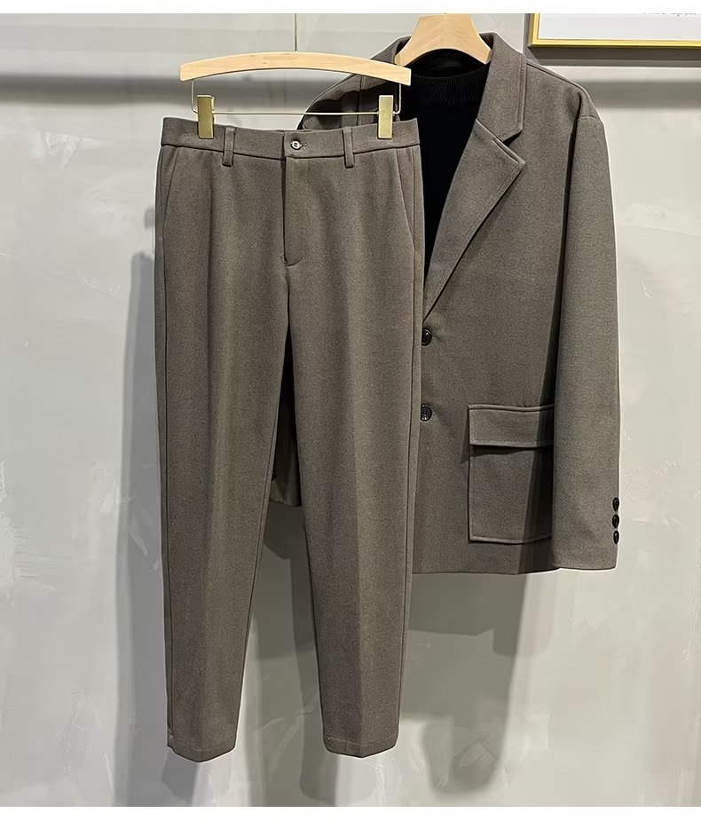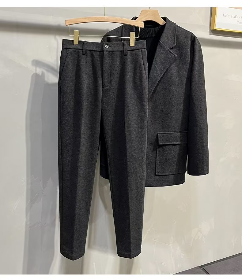 바지 남자 한국식 가을과 겨울 모직 정사이즈 자른 바지 남성용 슬림핏 더깅 바지 캐주얼 트렌디 바지스토어 가기