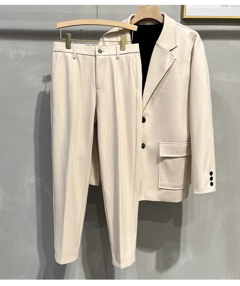 바지 남자 한국식 가을과 겨울 모직 정사이즈 자른 바지 남성용 슬림핏 더깅 바지 캐주얼 트렌디 바지