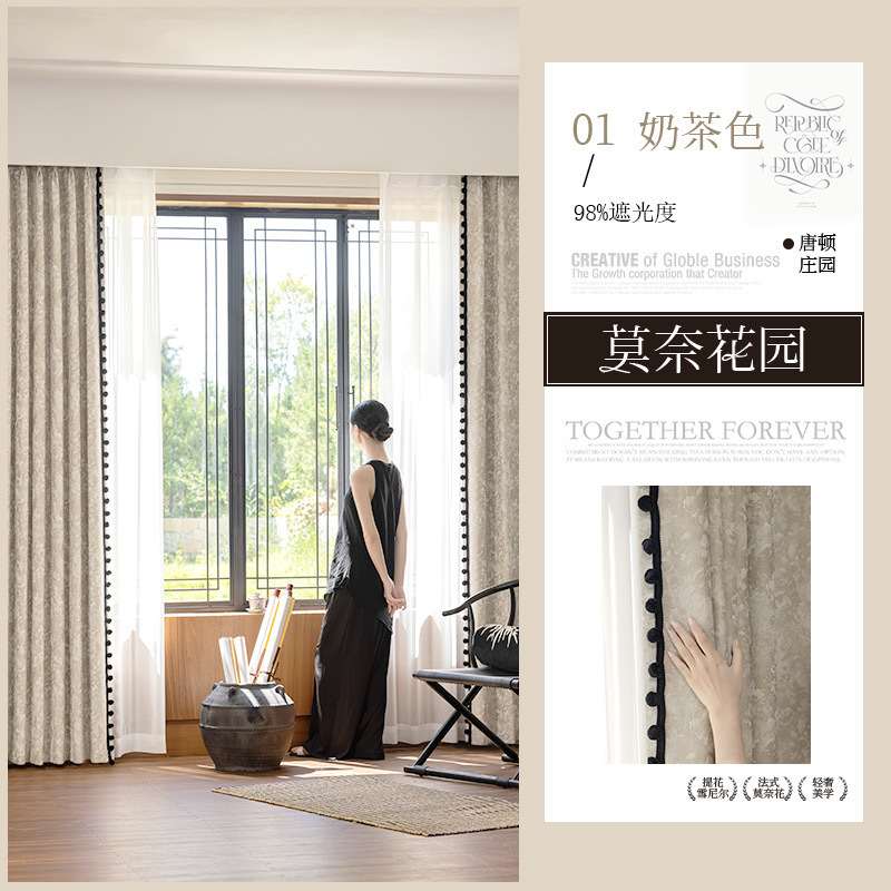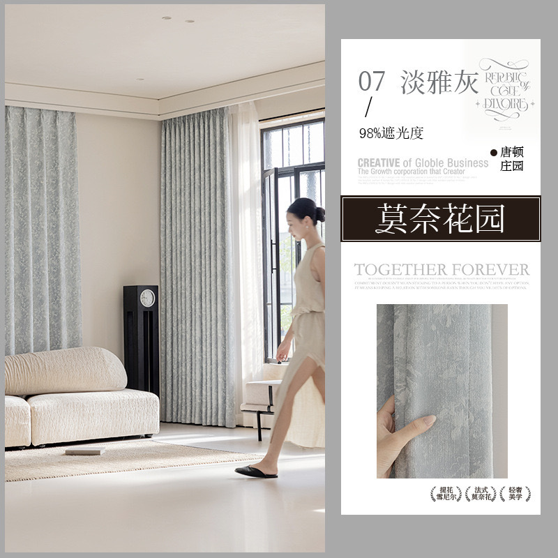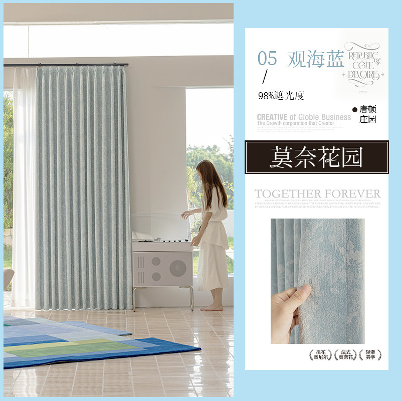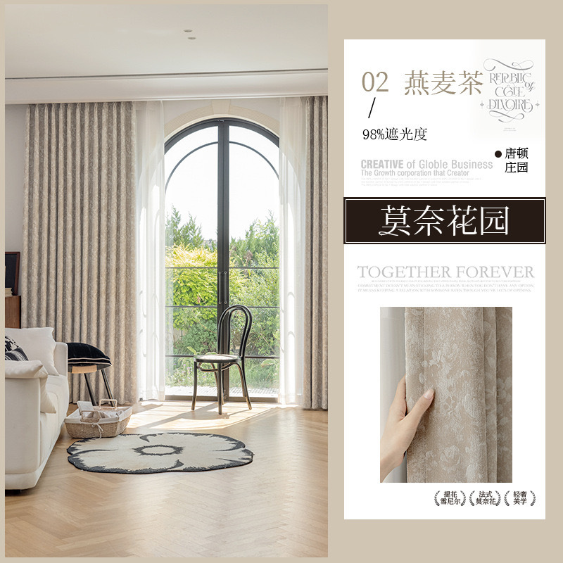 레드 북 인터넷 축하 커튼 새로운 프랑스 스타일 전체 음영 두꺼운 Chenille Jacquard 커튼 완성 거실 침실