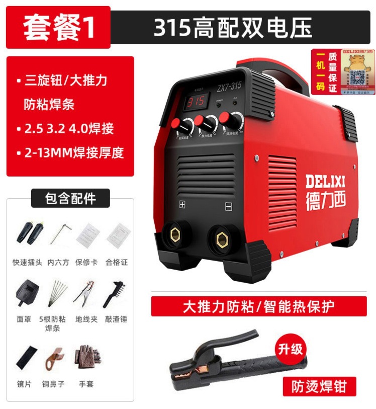 Delixi 315 400 전기 용접 기계 220v380v 산업 등급 이중 전압 가정용 모든 구리 소형 용접 기계