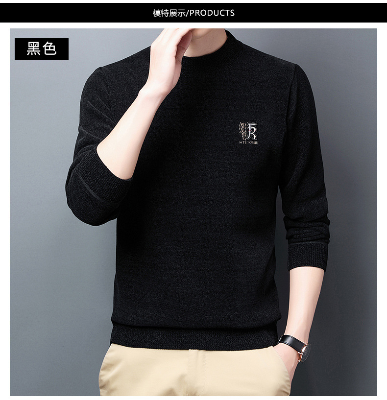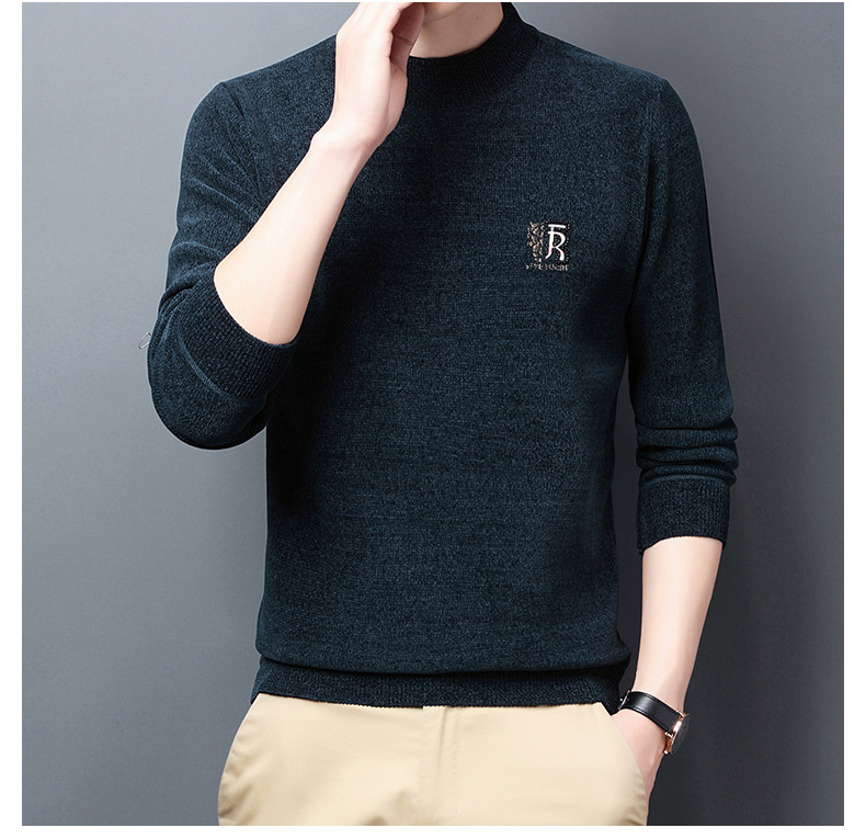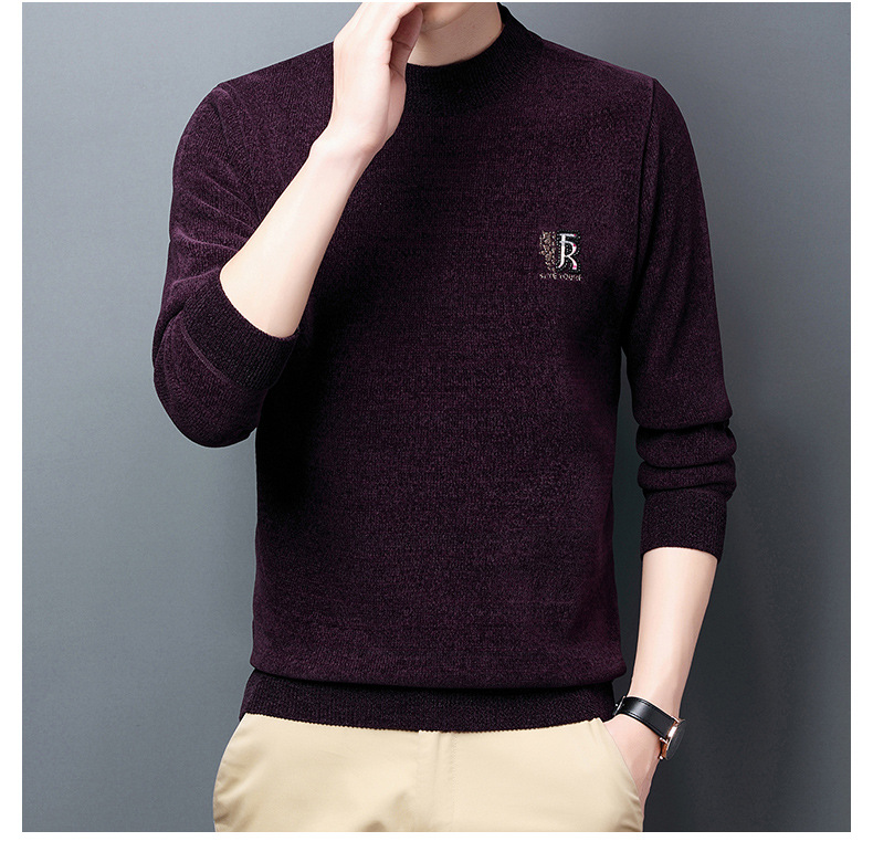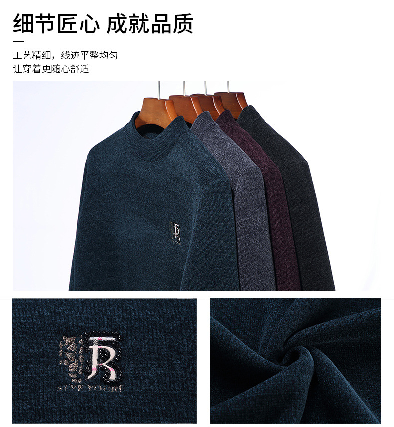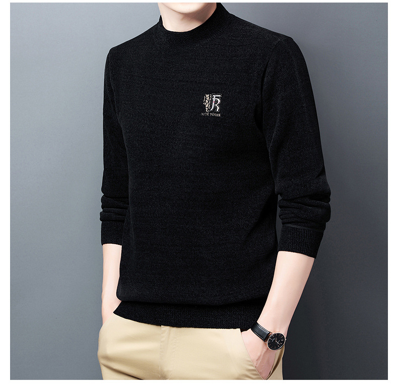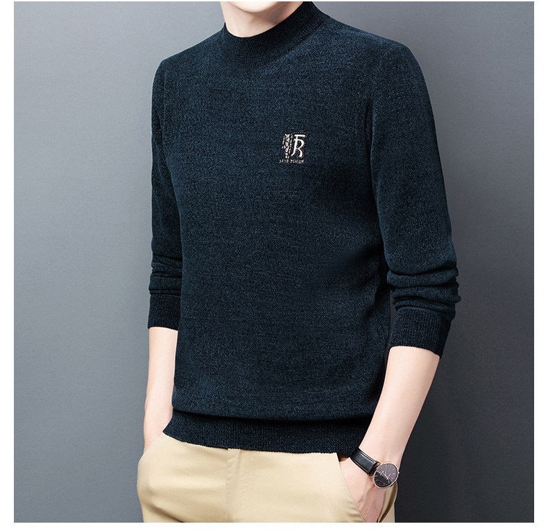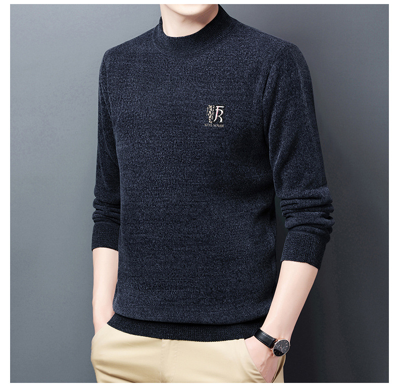 국경 간 남자 기모 체닐 스웨터 남자 가을과 겨울 반 높이 칼라 두꺼운 따뜻한 베이스 스웨터