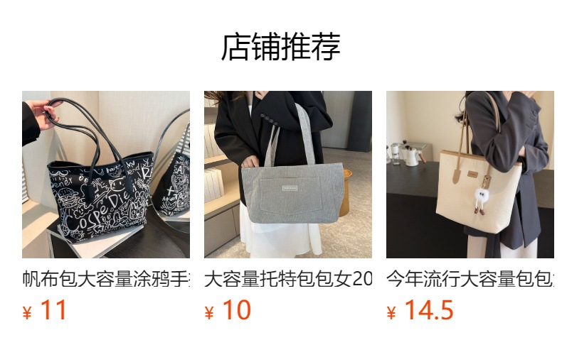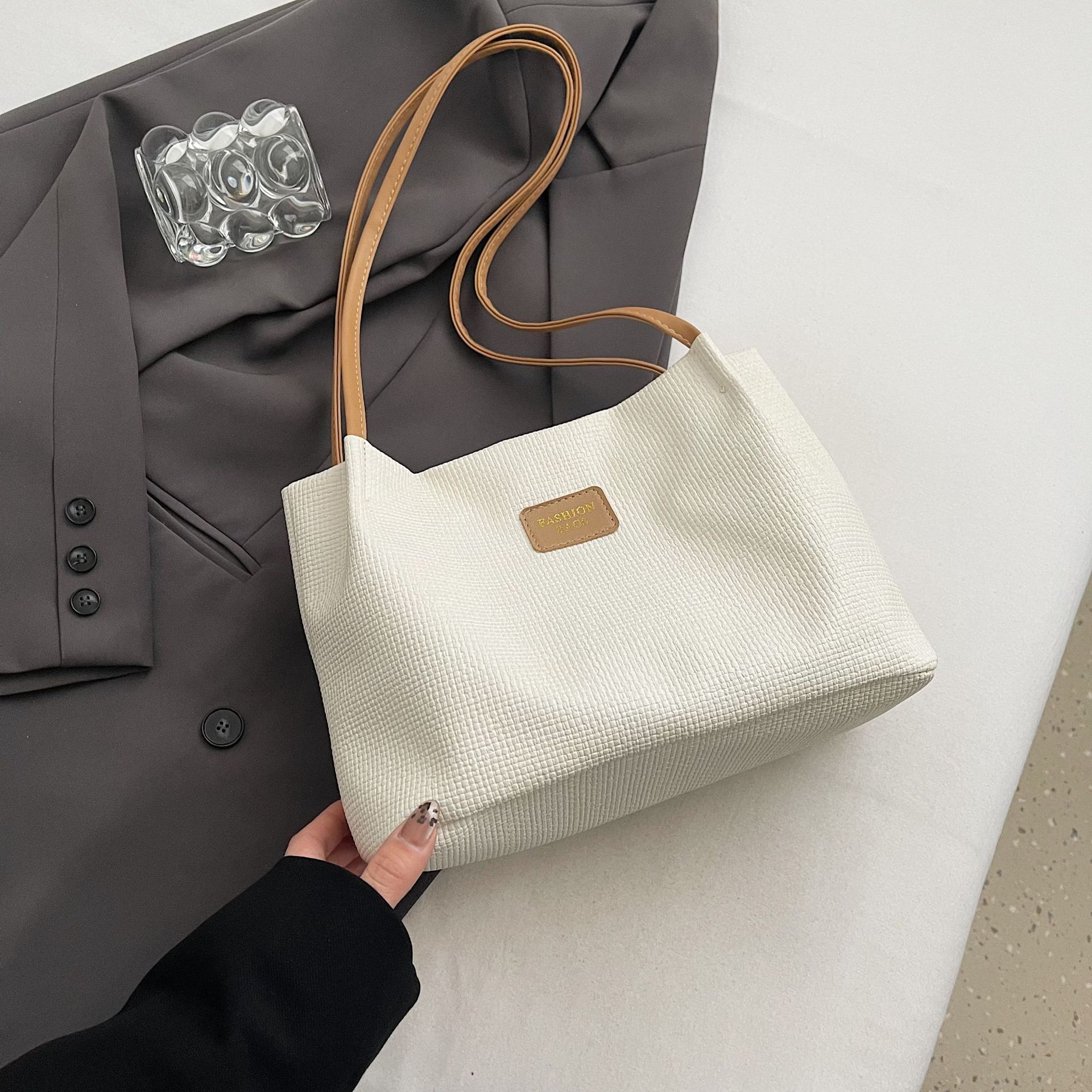 대용량 가방 여성의 2024 새로운 가을 올 매치 간단한 어깨 가방 유행 통근 토트 버킷 가방스토어 가기