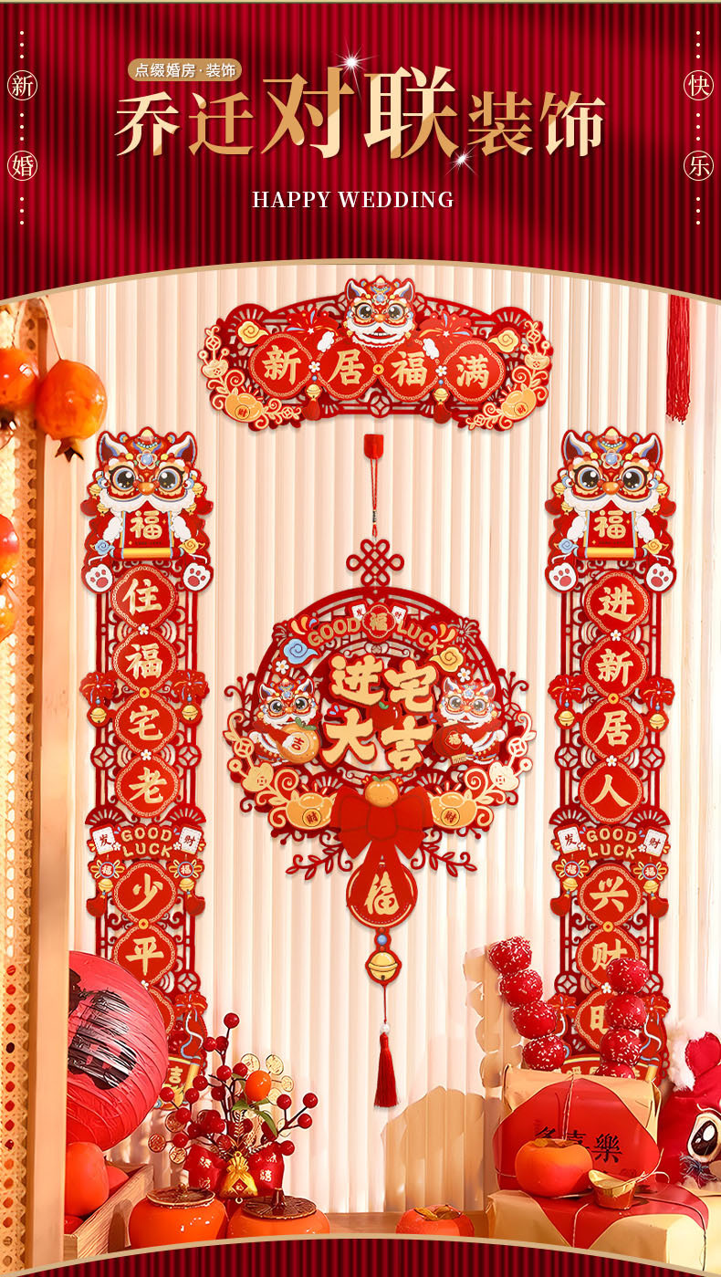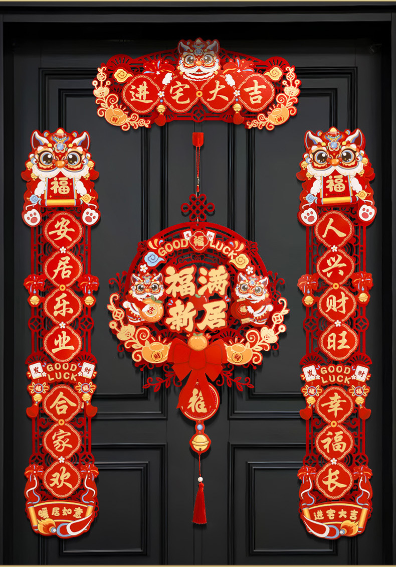 • 집에 들어오기 행운을 빌어요 대련 [플로킹 대련, 완제품 배송]