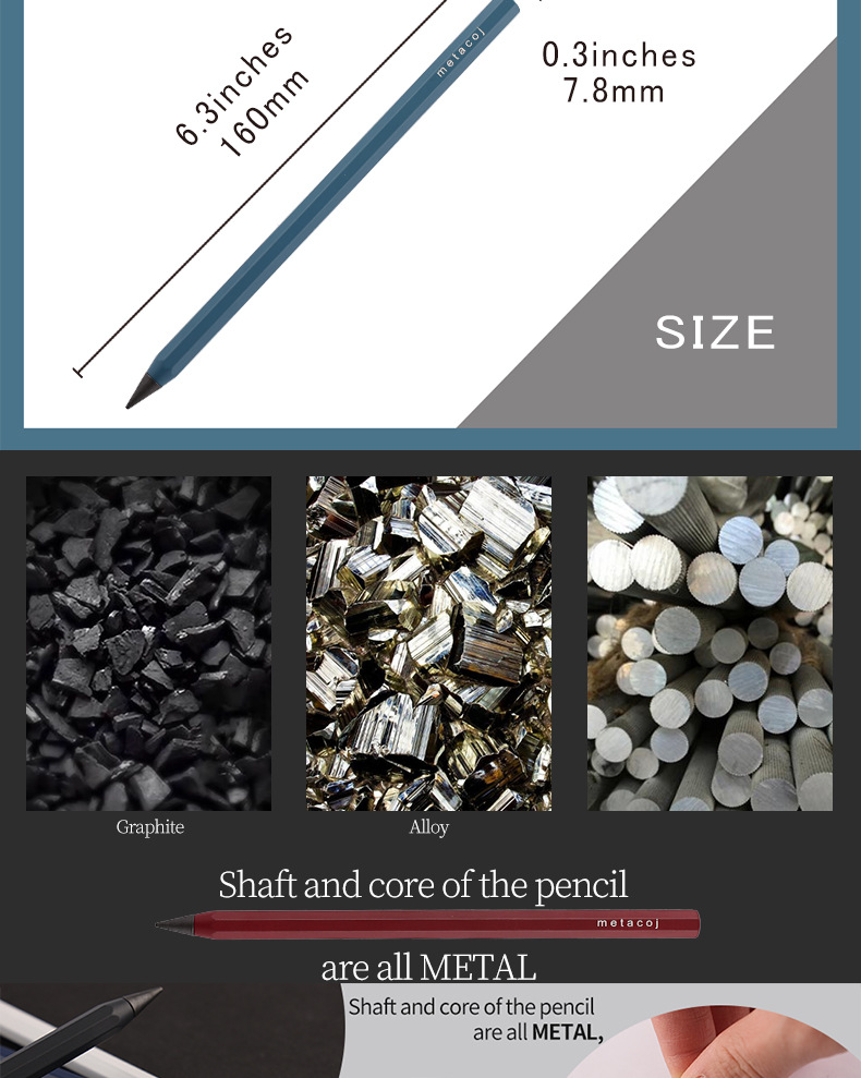검은 기술 금속 영원한 연필은 연필 그림을 날카롭게하고 끝없는 스케치 선물 펜 로고를 쓸 필요가 없습니다.
