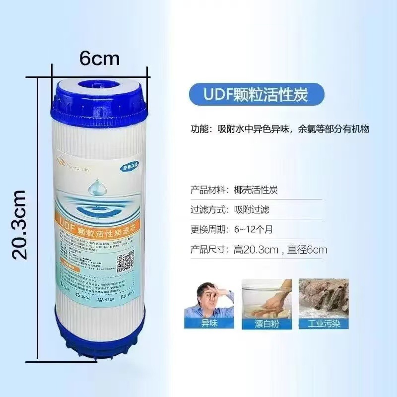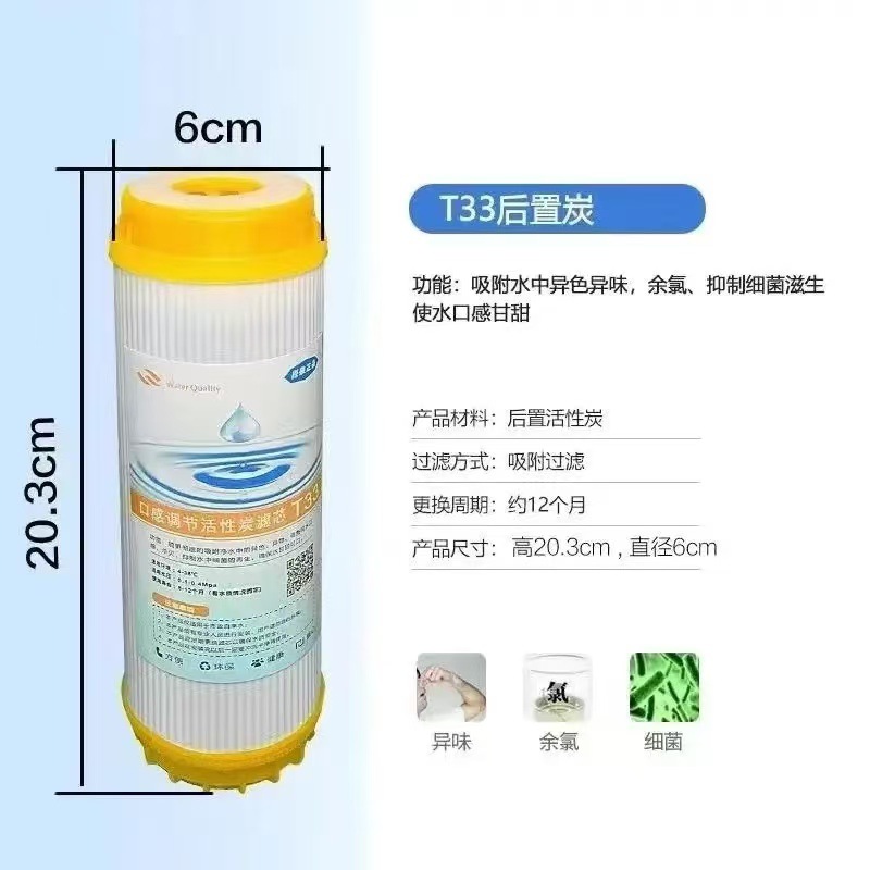 정수기 8inch 필터 요소 20cm 긴 전면 입자 탄소 후면 맛 T33 코코넛 껍질 활성탄 필터 요소 pp 면스토어 가기