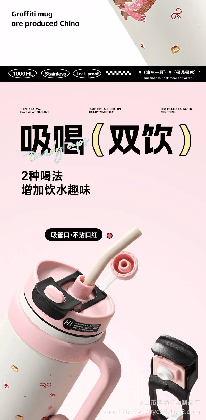 고급스러운 316 보온병 컵, 대용량 아이스 컵, 밀짚 컵, 자동차 컵, 홈 오피스 핸들, 냉수 컵